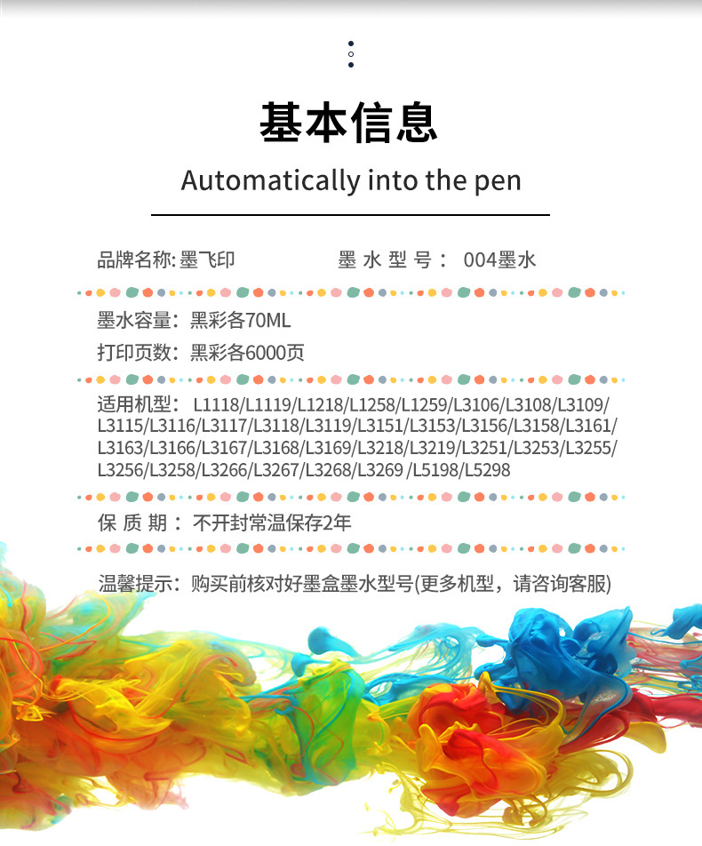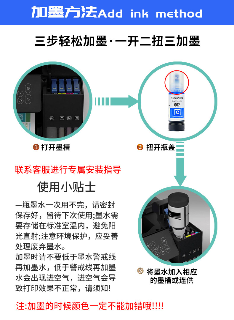爱普生原装墨水004 003 L3106L3108L3115L3117L3119L3118打印机