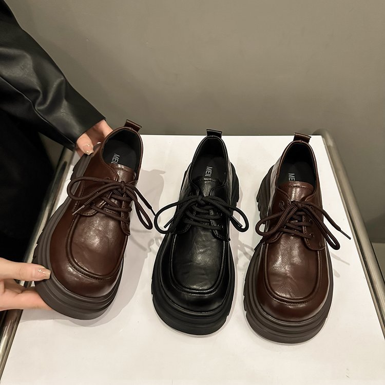 2026年新作春秋本革レディースシューズ、英国風万能厚底JK風レースアップシューズ、フラットローファー