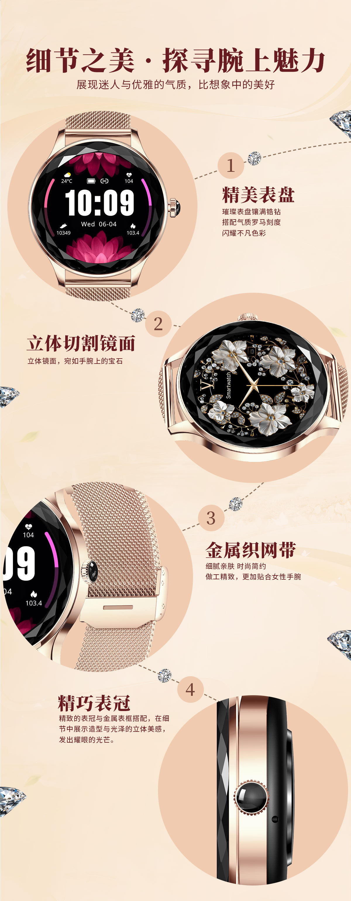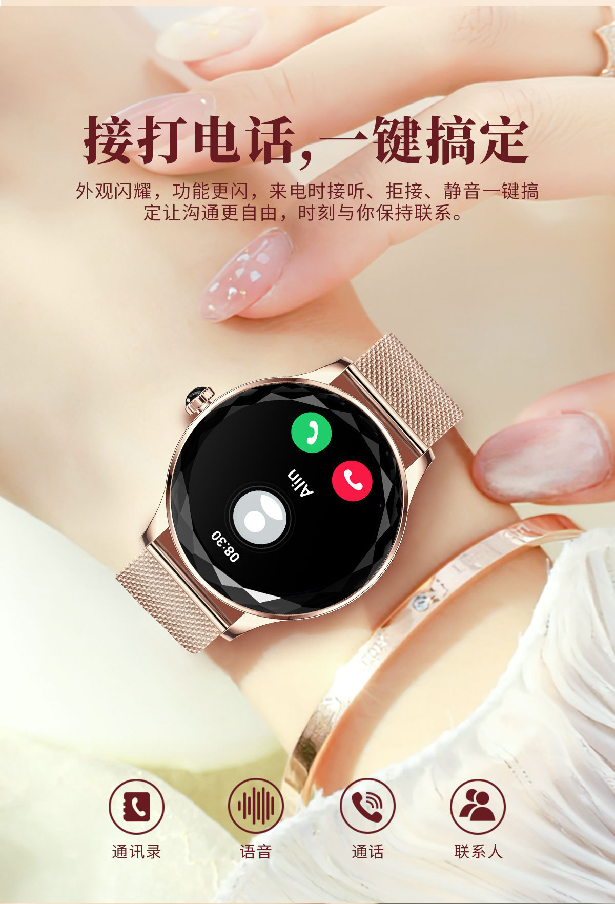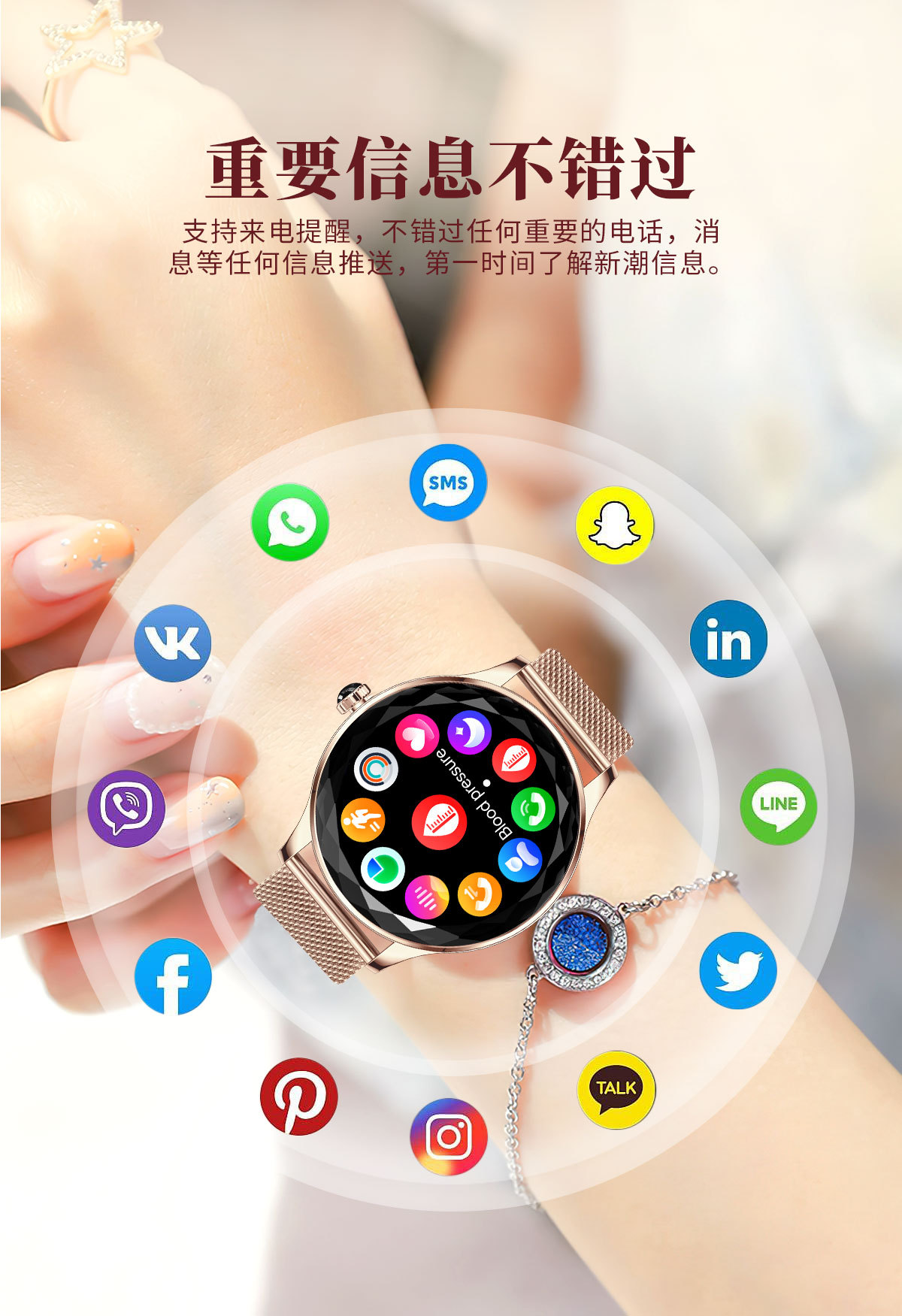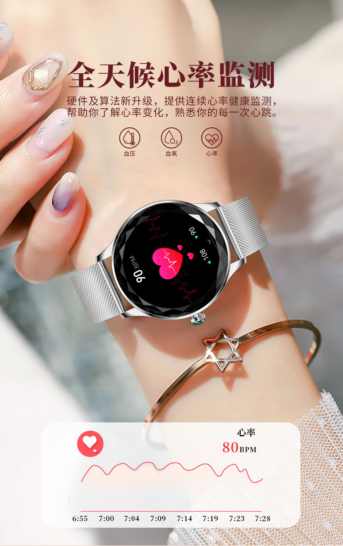 Nx23 pro女性ブルートゥース通话カットミラースポーツ歩数计心拍数情报リマインダースマートウォッチ