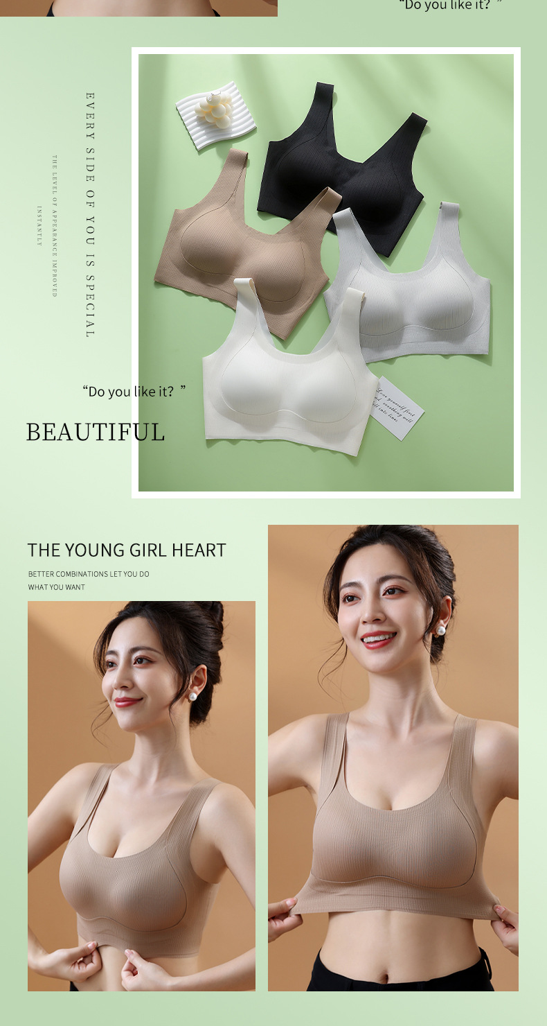 夏薄型通気性シームレスバックスポーツブラオールインワンプッシュアップサイドクローズノンワイヤーベストブラジャー