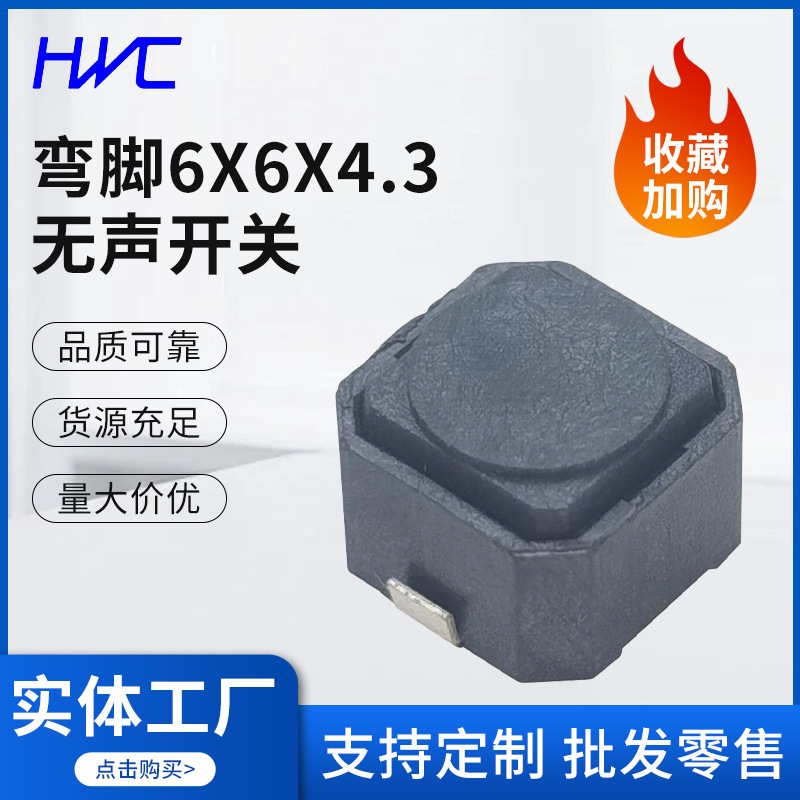足を曲げた6x6 x4.3サイレントスイッチ4.3高シリコンスイッチパッチ車載スイッチパッチ空気タッチスイッチ