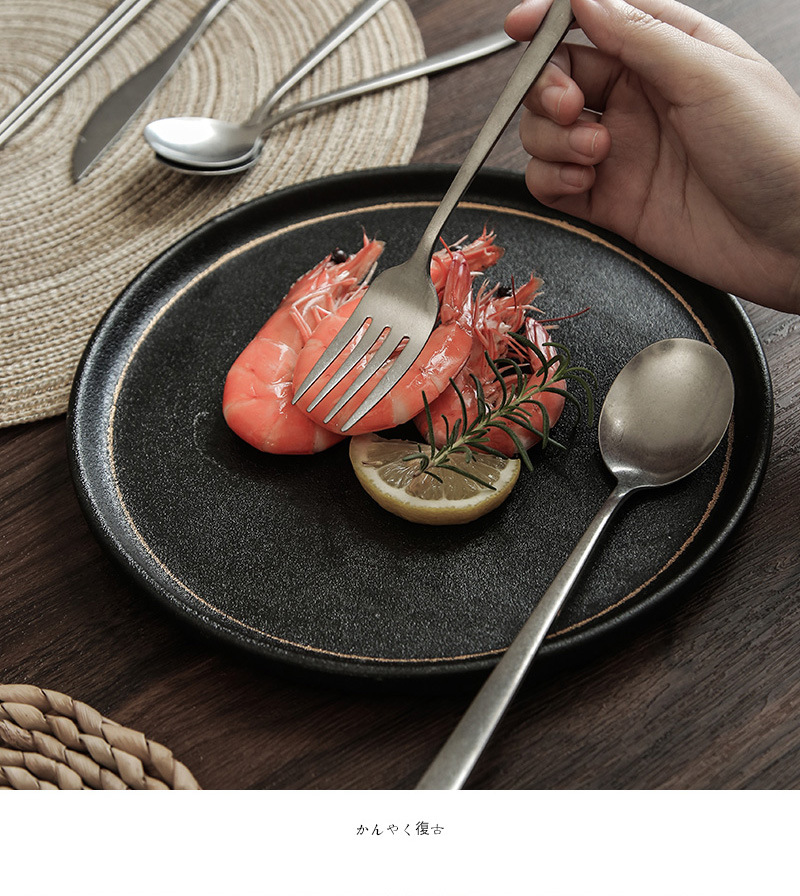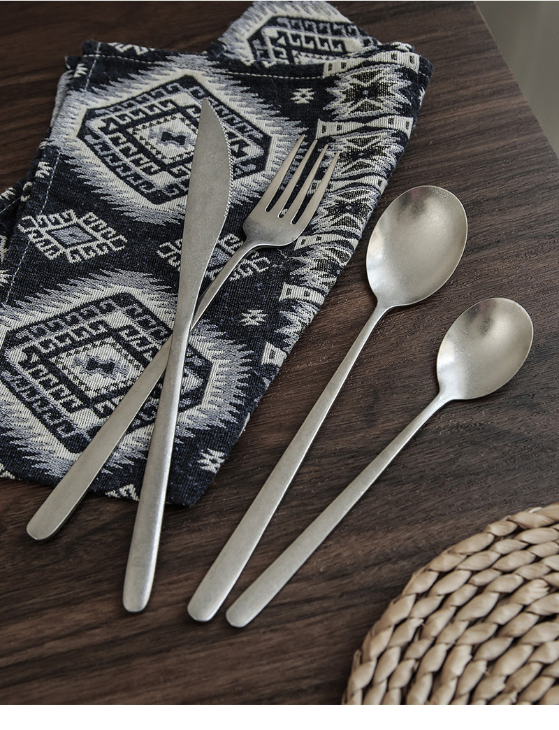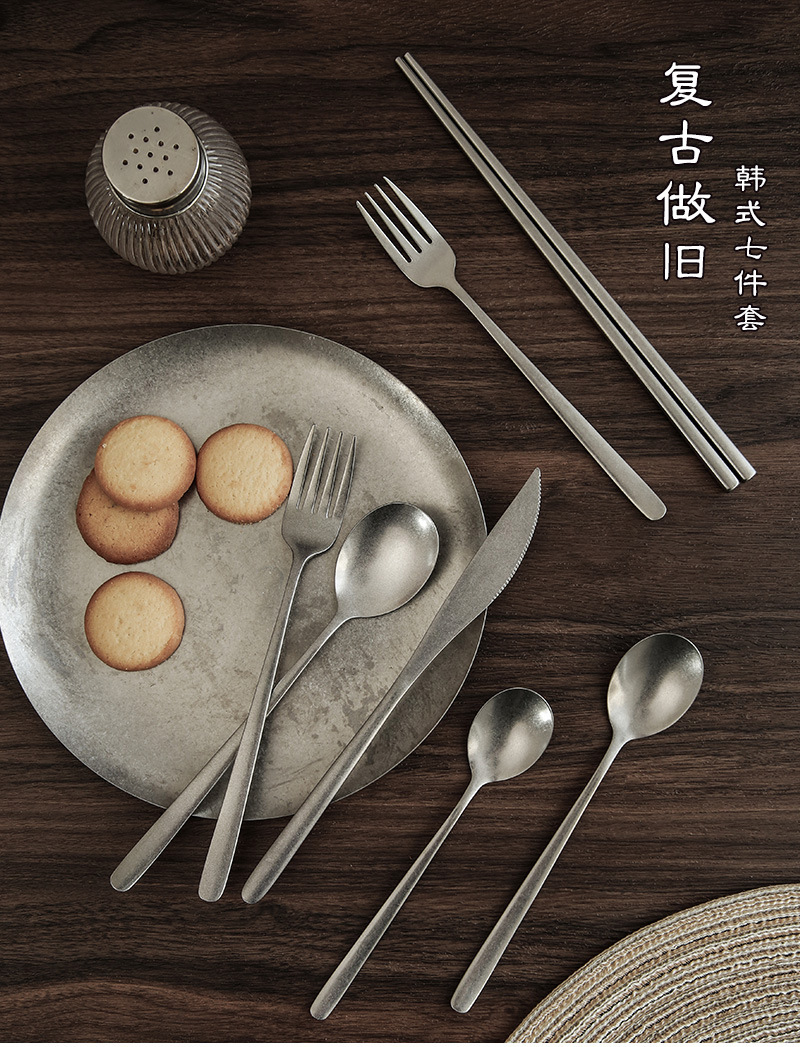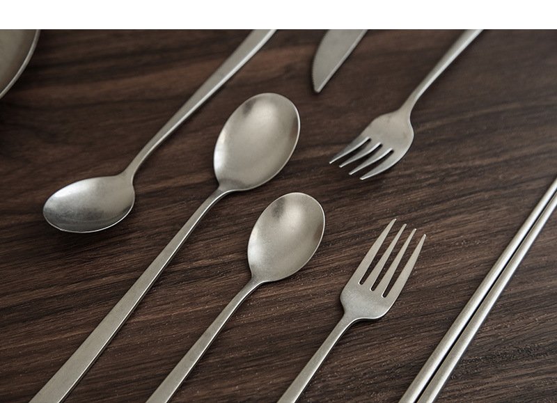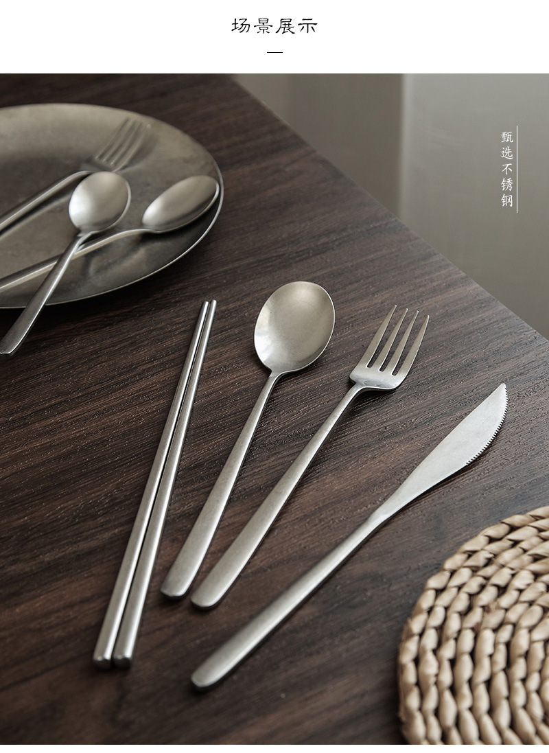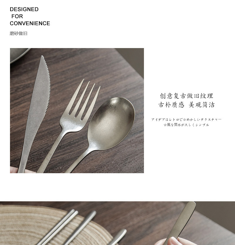 北欧レトロなフロスト騎士ステンレス食器を厚くして古い洋食ナイフフォークスプーン家庭用スープセットフォークを作る