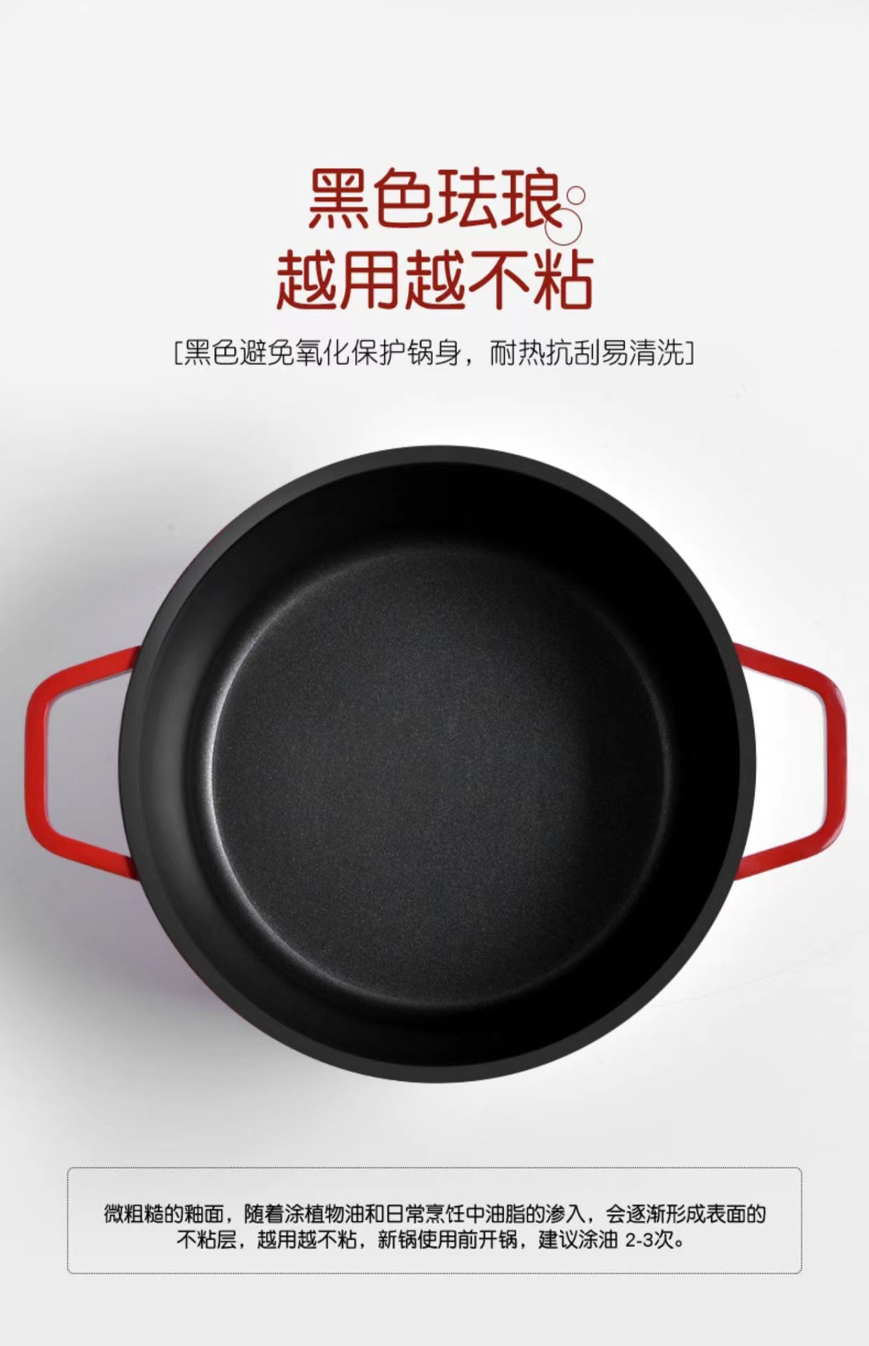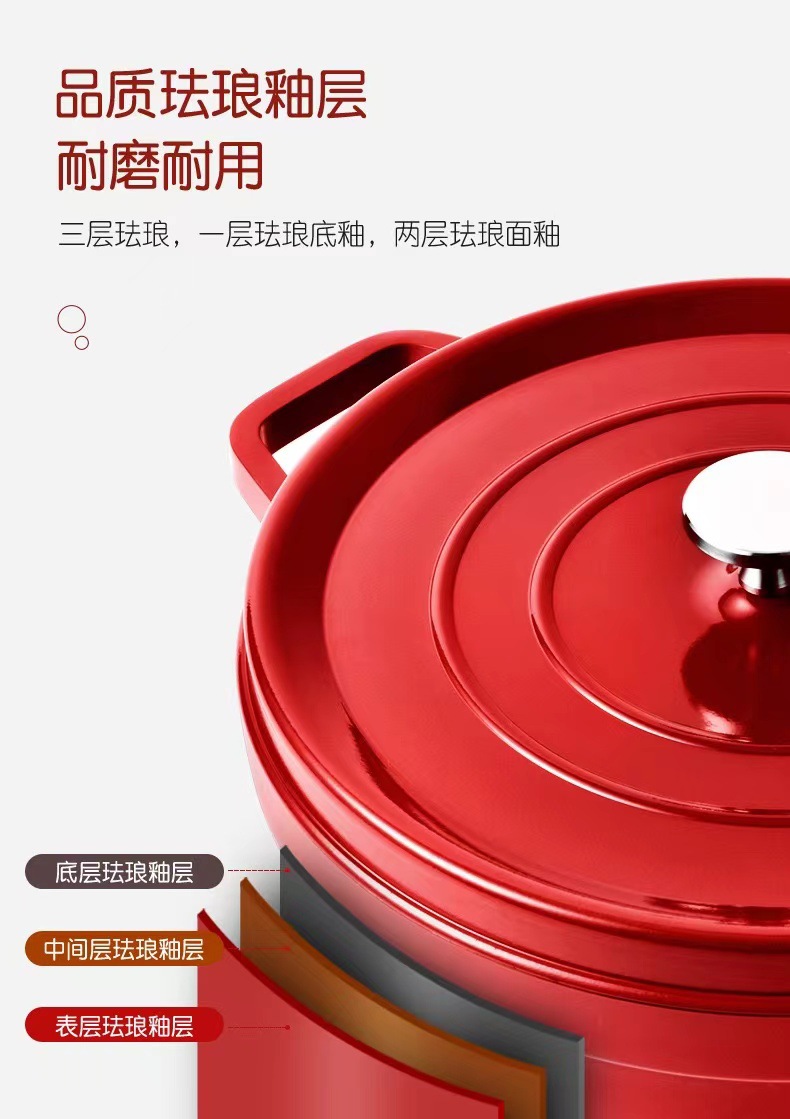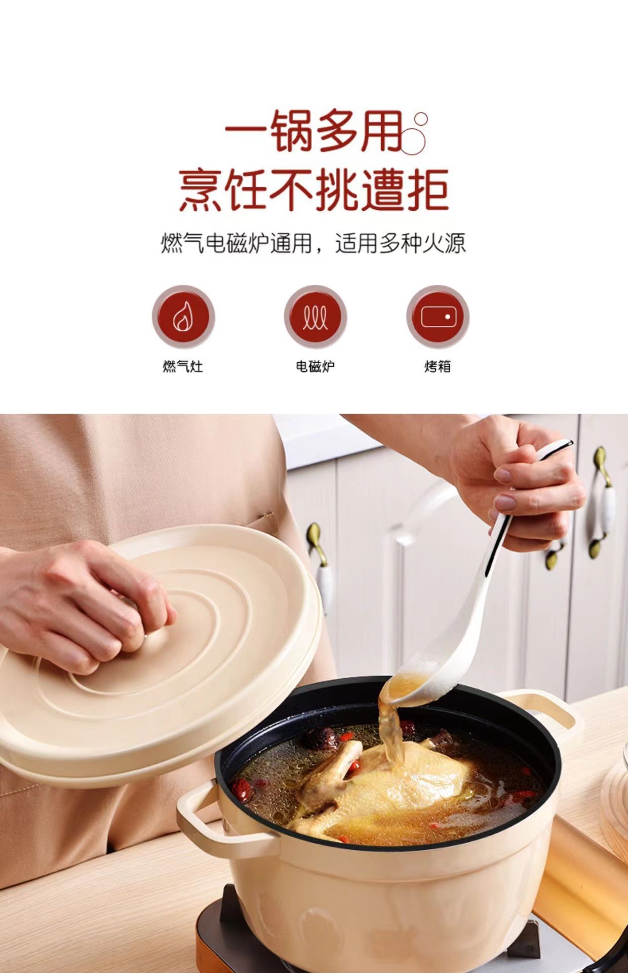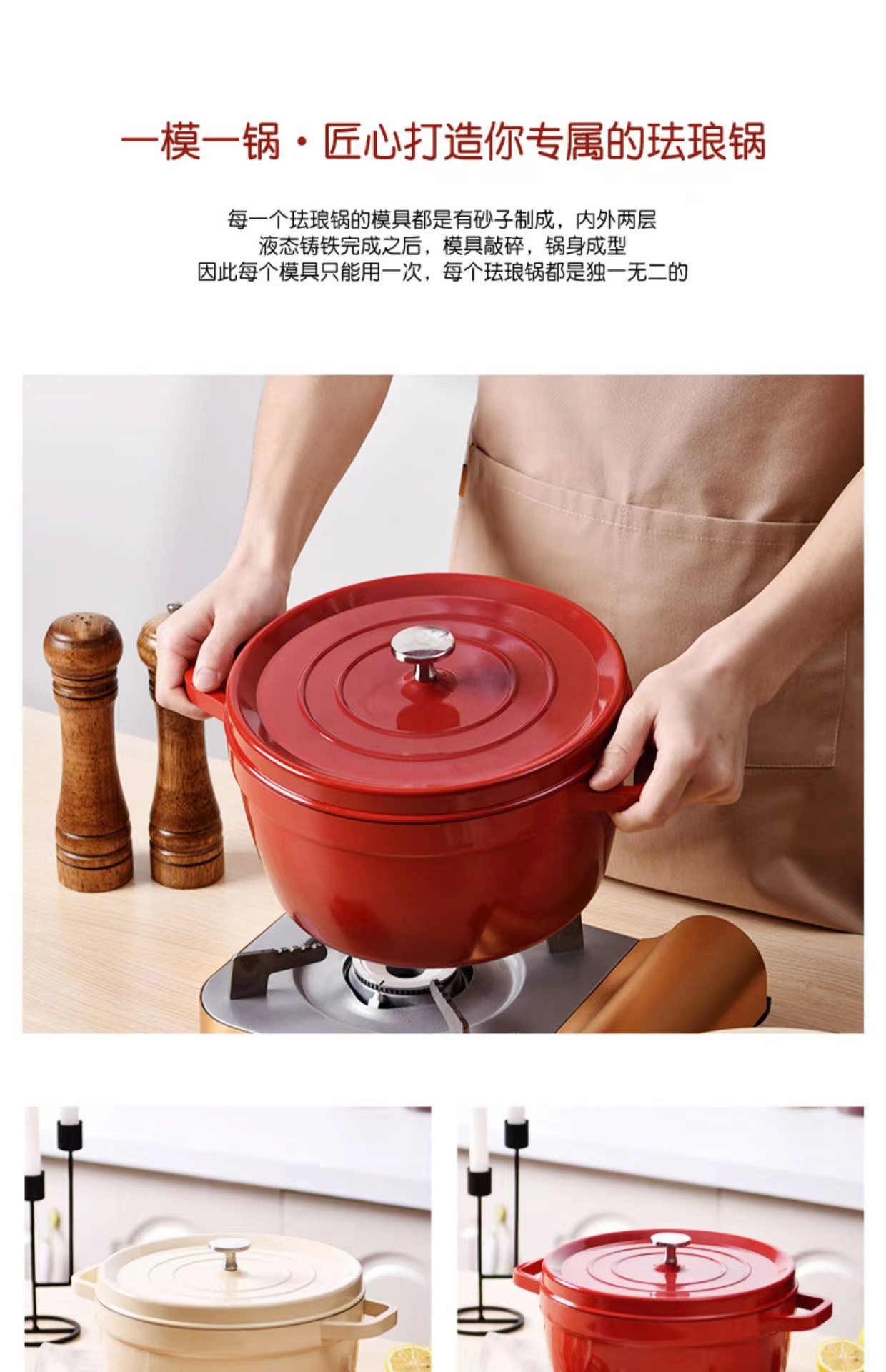 国境を越えた新型鋳鉄エナメル鍋スープ鍋共通煮込み鍋家庭用炒め鍋煮鍋両耳微圧鍋スープ鍋