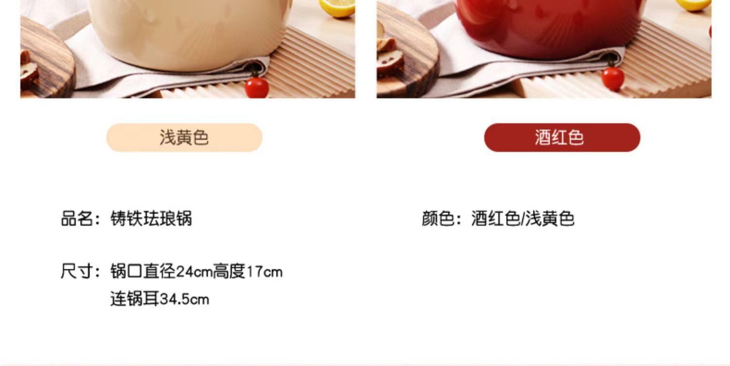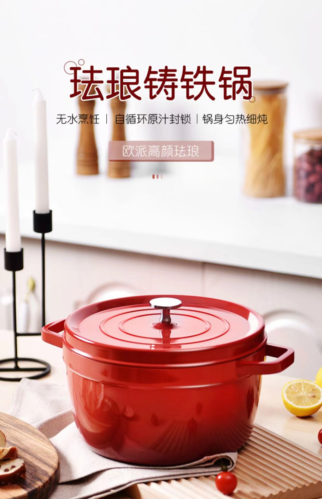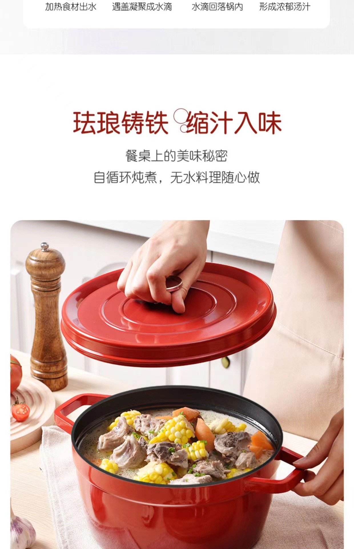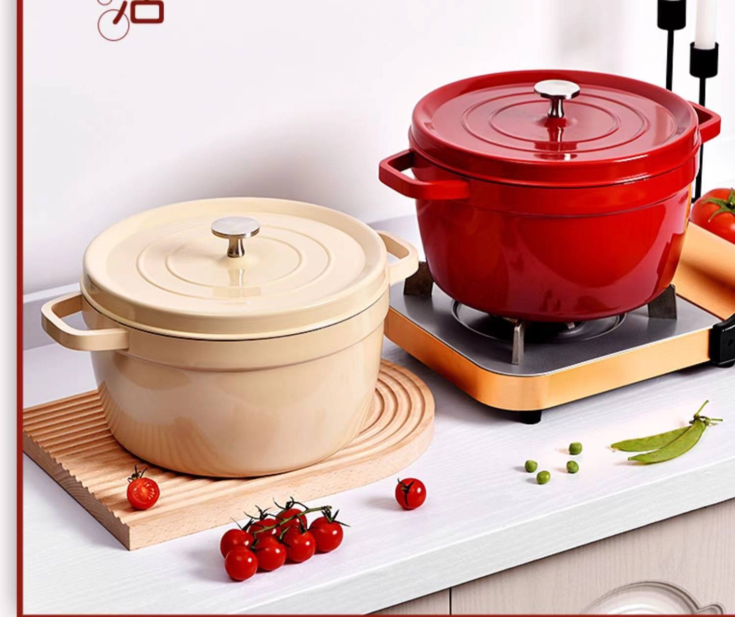 国境を越えた新型鋳鉄エナメル鍋スープ鍋共通煮込み鍋家庭用炒め鍋煮鍋両耳微圧鍋スープ鍋