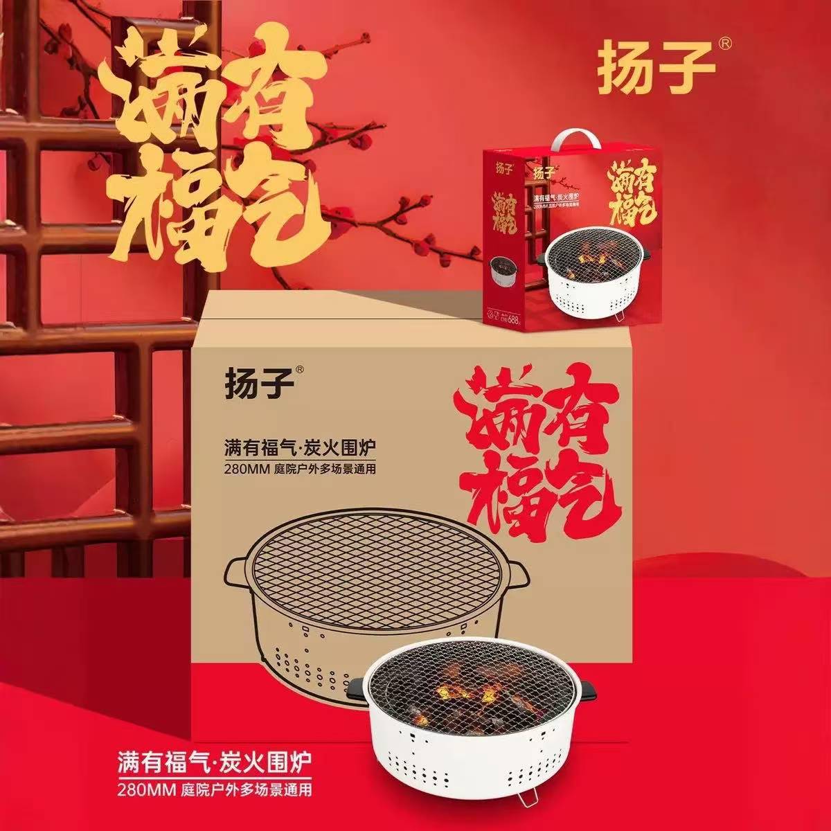 新款围炉煮茶便携家用户外木炭多功能烤肉炉碳烤炉圆形无烟取暖炉