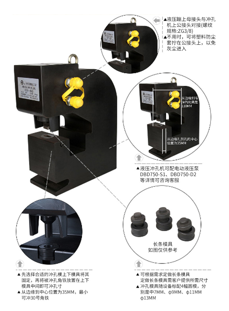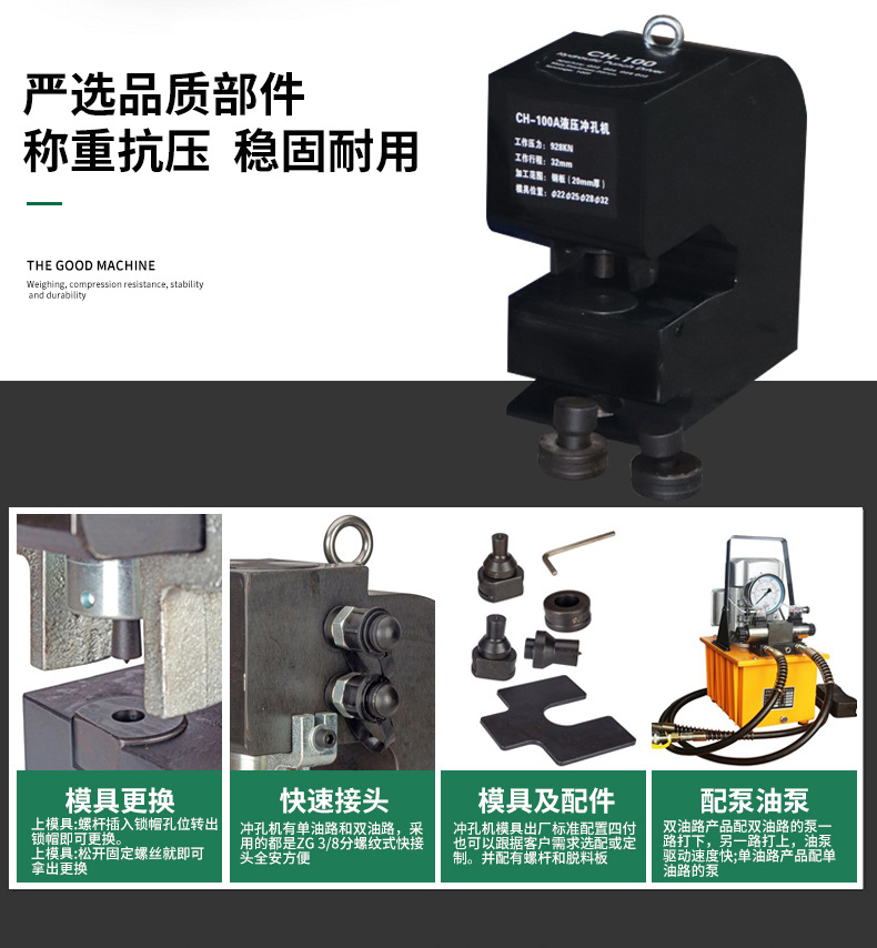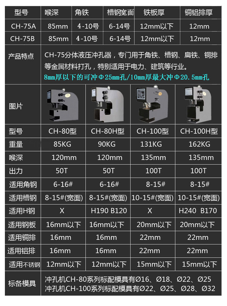 アングル鋼溝鋼h鋼厚鋼板穴あけ機二回路大トン数分体式CH-70油圧穴あけ機