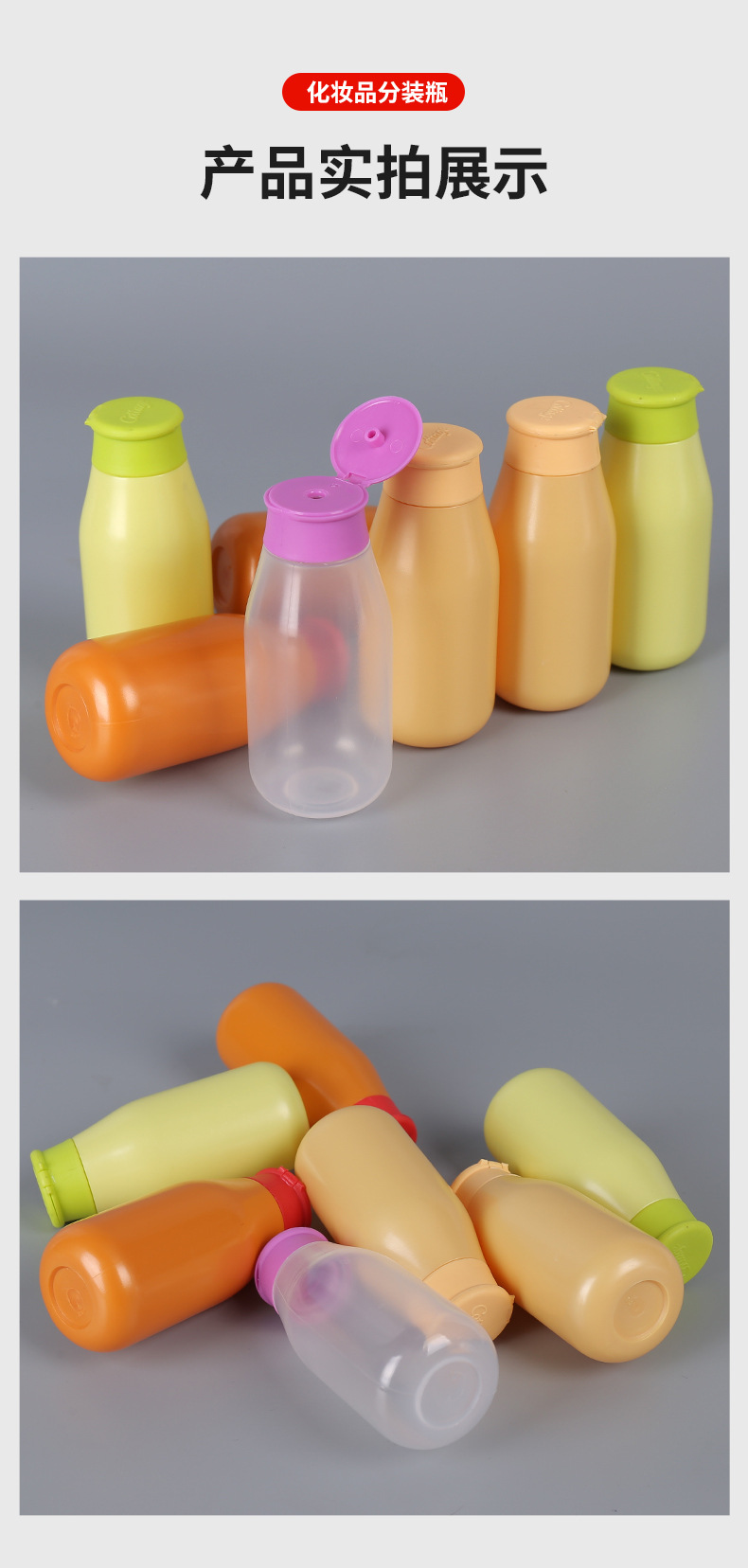 カラーのプラスチックの瓶の化粧品は瓶を分けて旅行の瓶を詰めます。