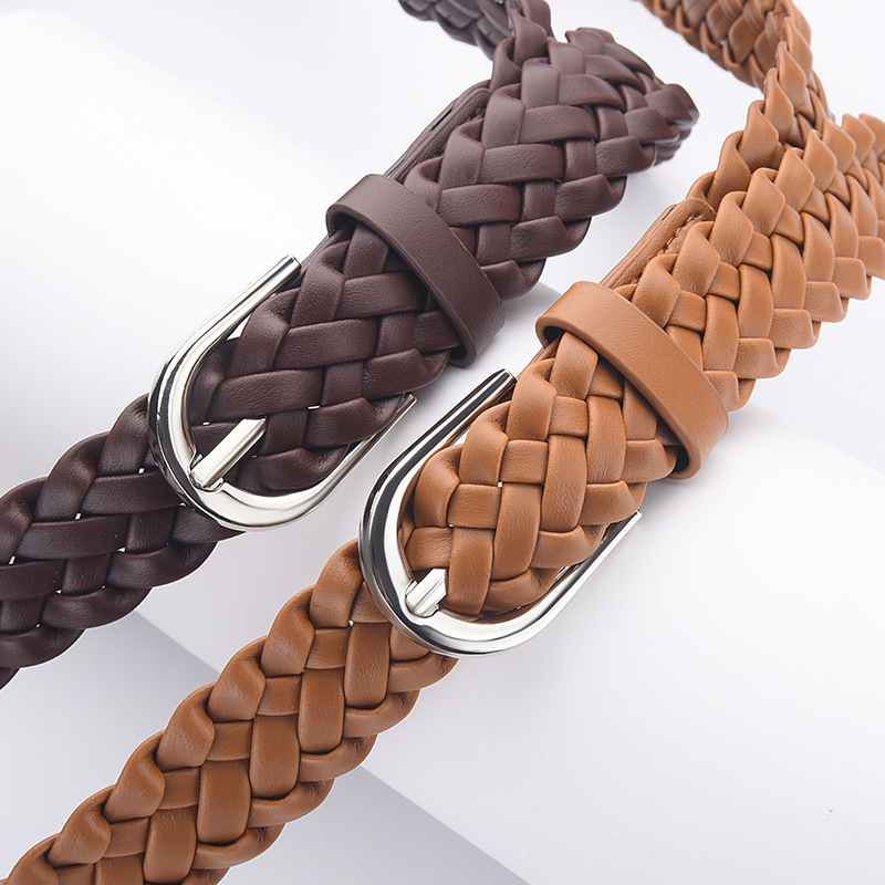 新款跨境文艺青年编织皮带复古针扣腰带女士休闲搭配牛仔裤细腰带