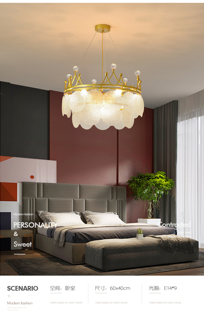 フランス風ネット赤軽豪華クラウン水晶客間シャンデリア寝室灯具シンプル現代大気児童室食堂灯