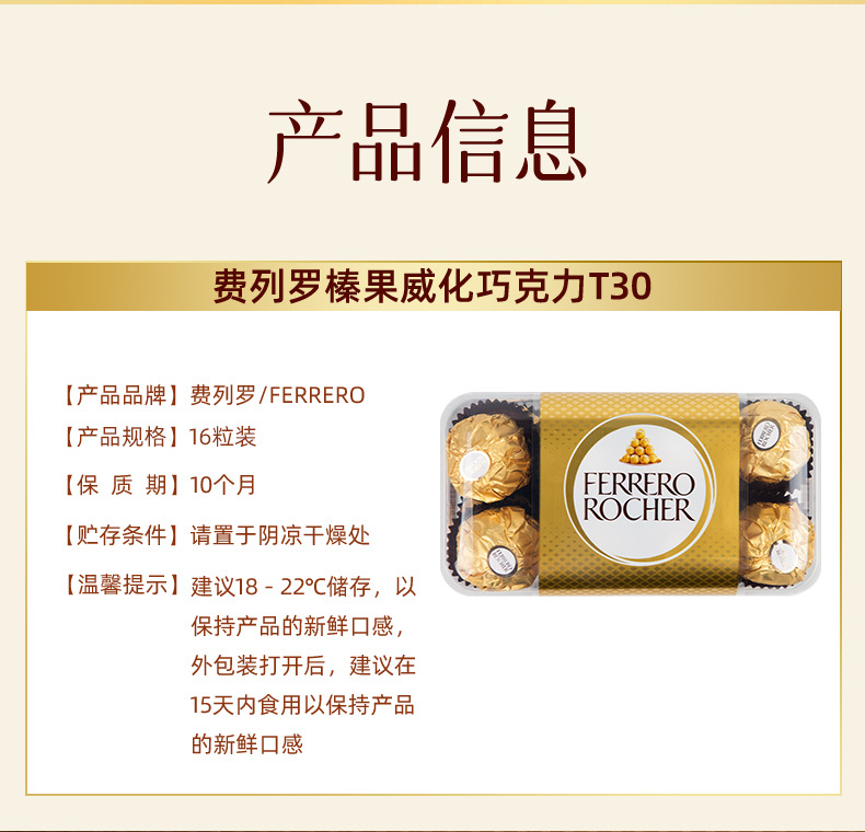 イタリアから輸入されたフェレロチョコレートt30粒金莎榛果間食ギフトボックスの喜糖卸売り