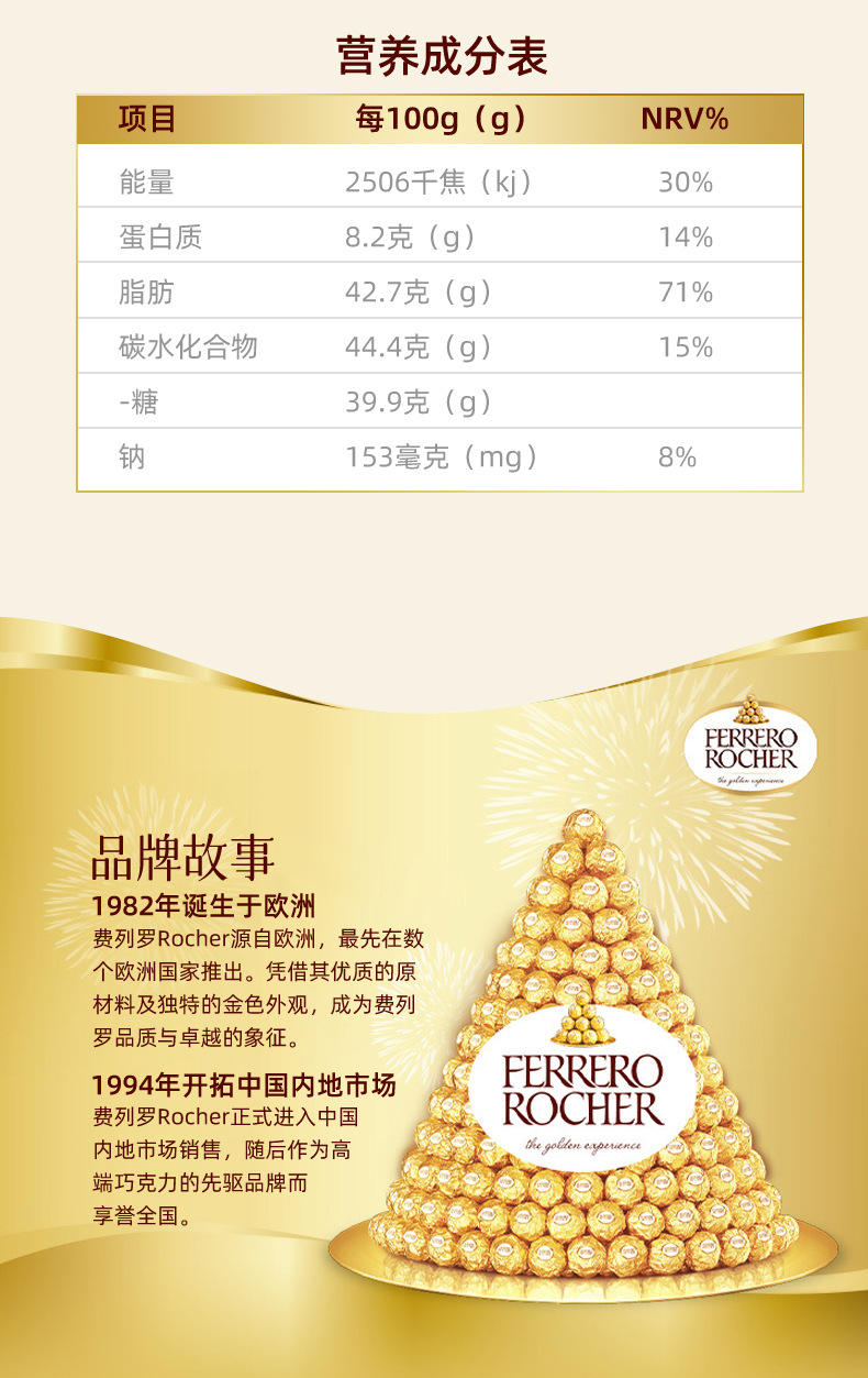 费列罗 金莎巧克力臻品金球48颗礼盒装表白生日礼物婚礼喜糖果