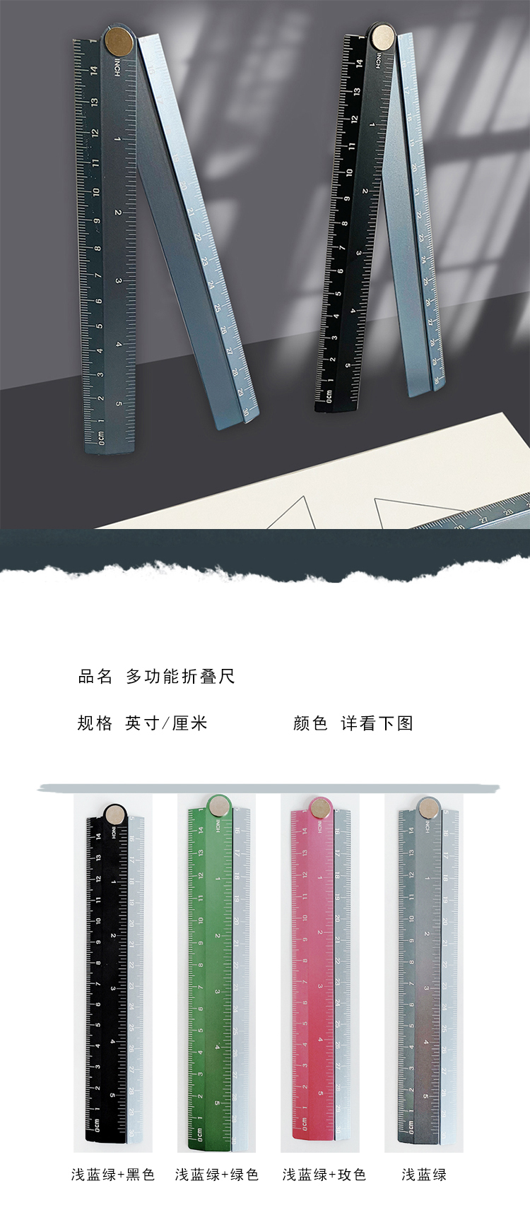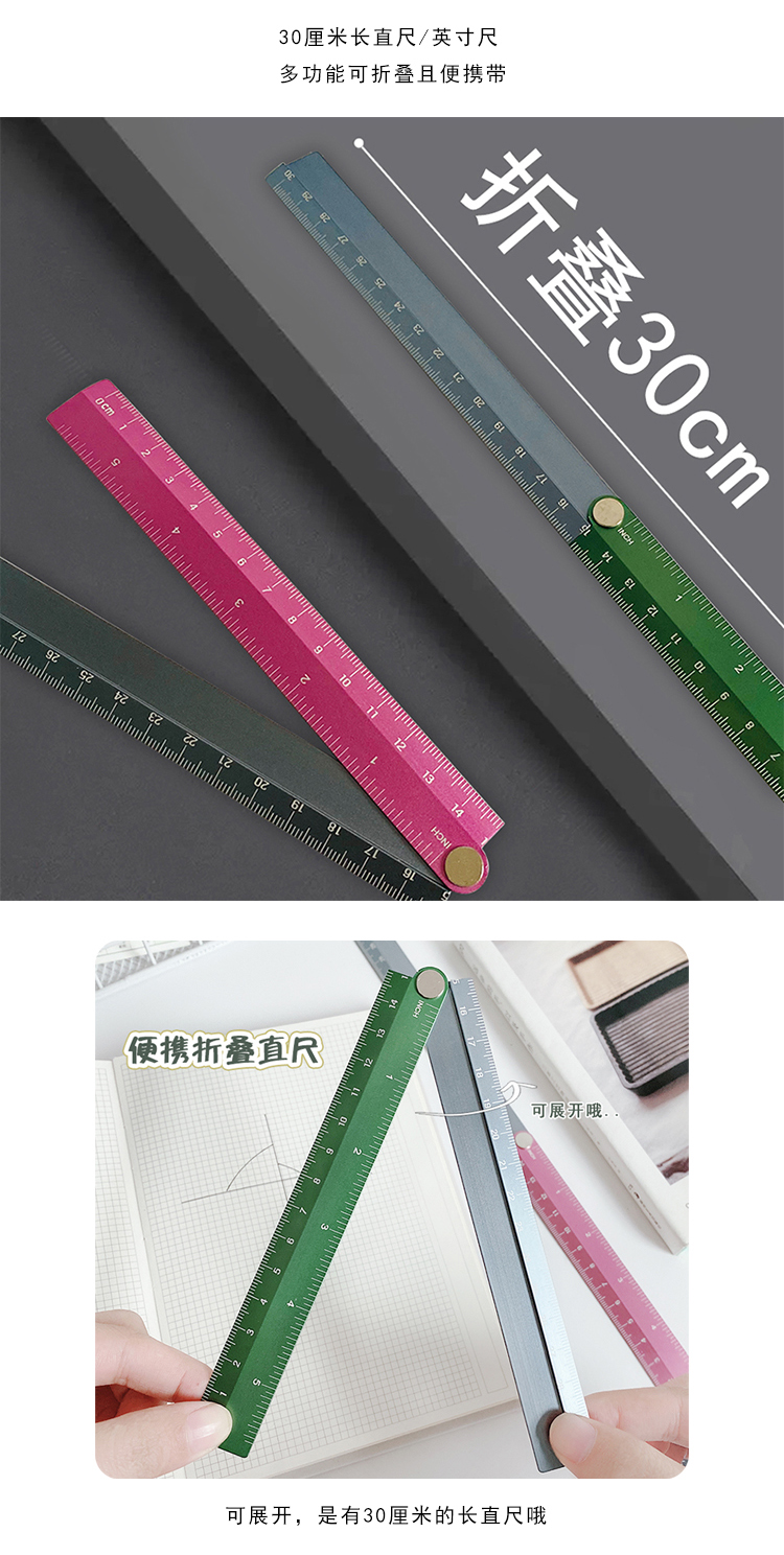 金属アルミ定規学生測定センチ定規試験数学絵画定規30cm折りたたみ収納直尺