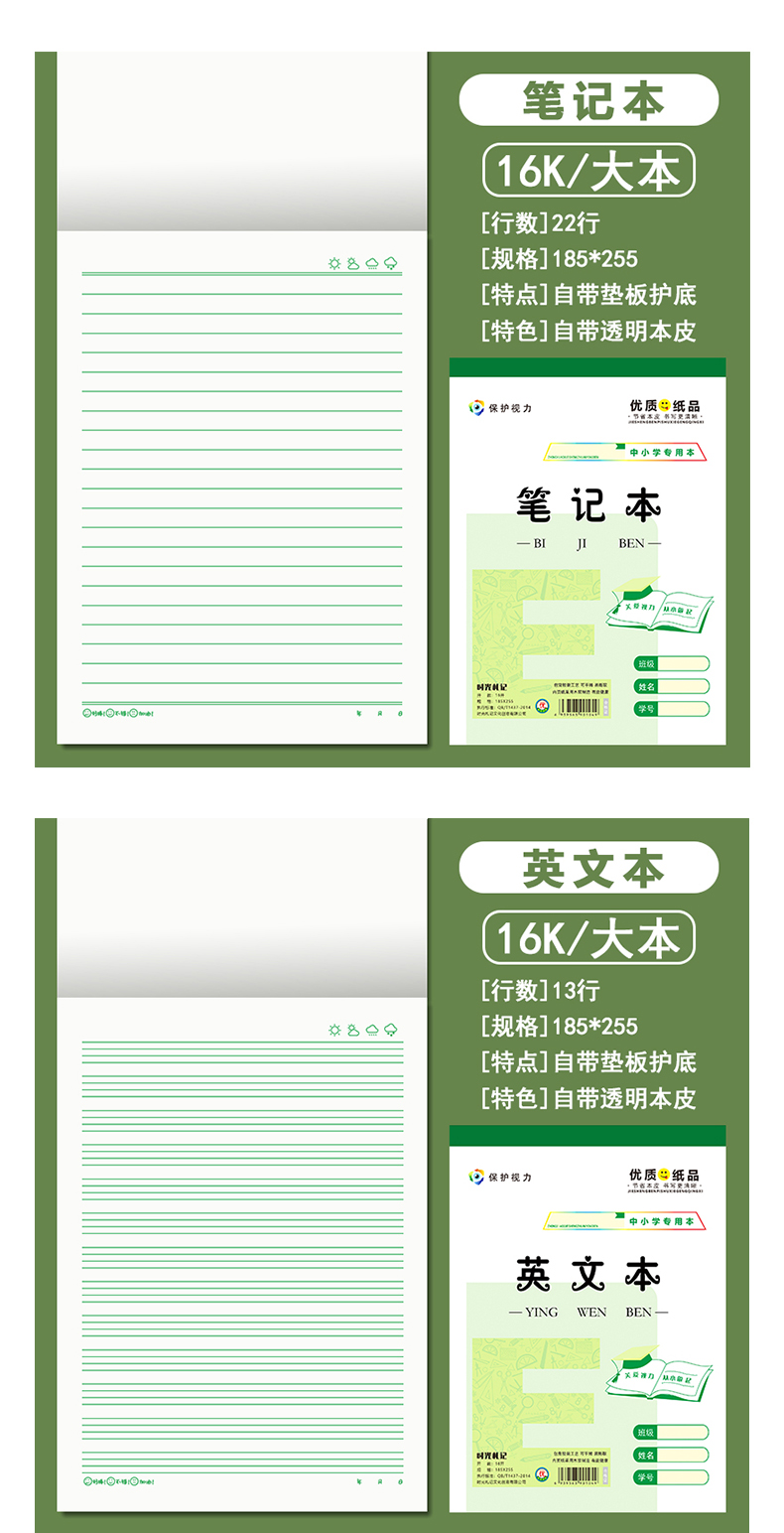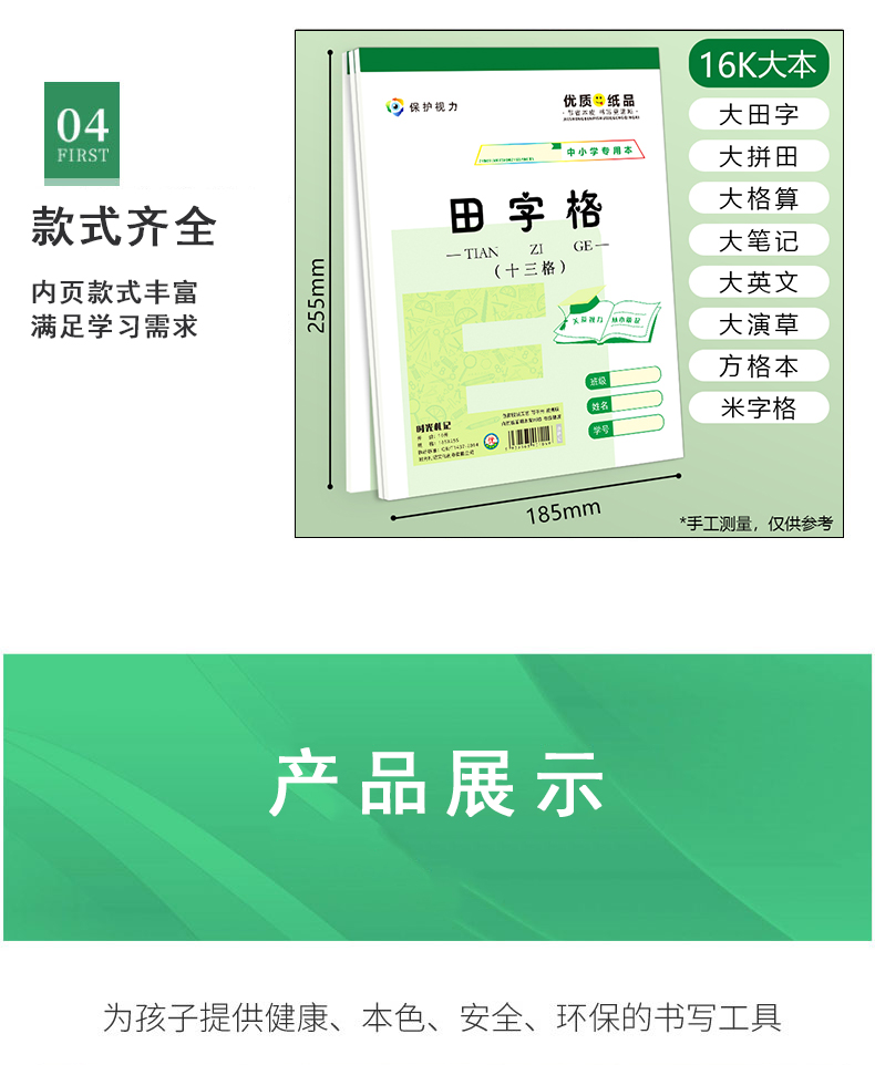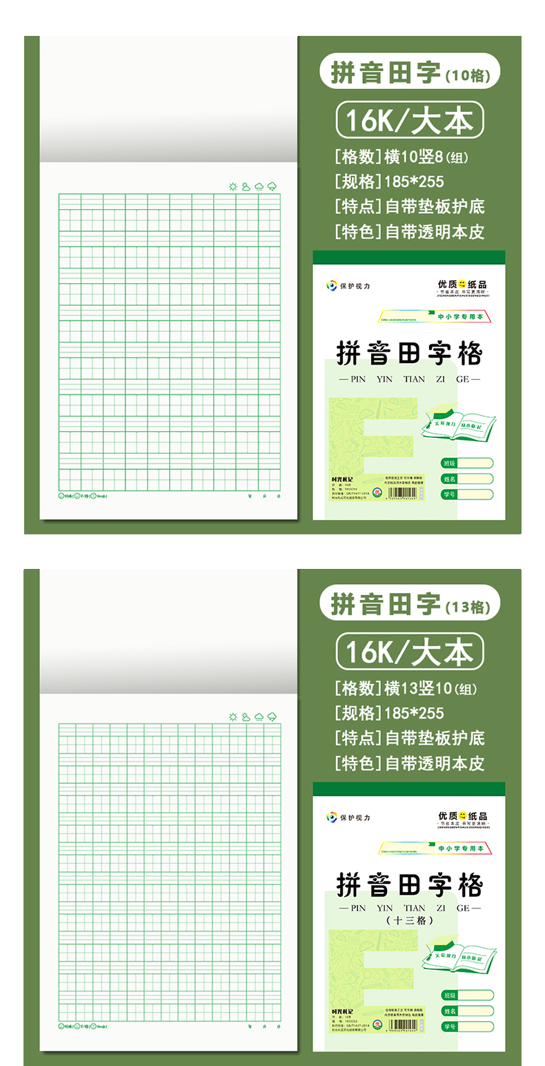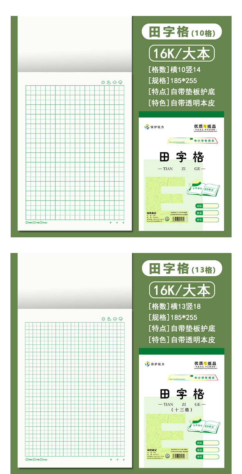 16k大サイズの仕事帳小中学校の大ノート英語の方眼ピンイン田字格米字格E字本卸売り