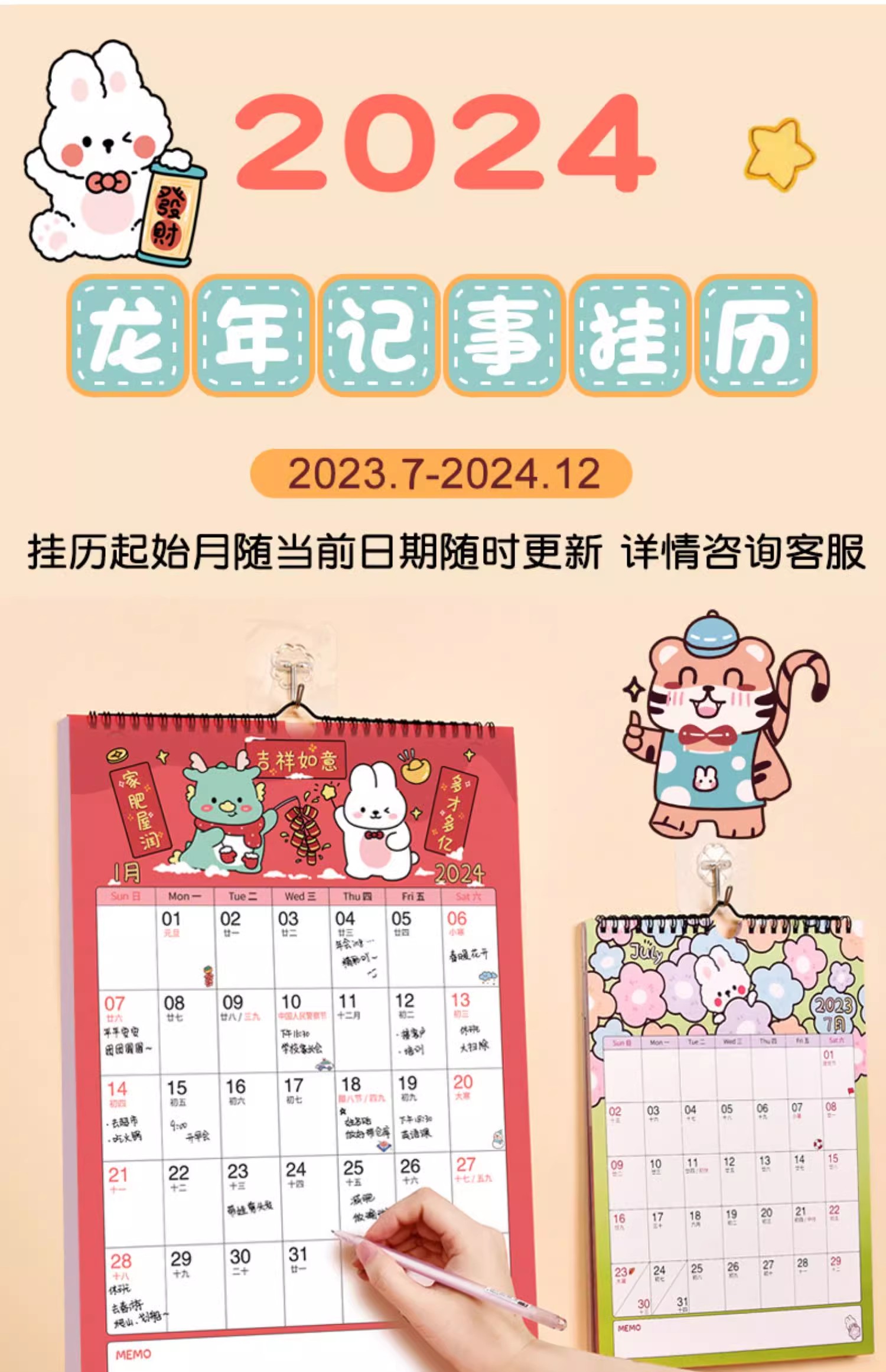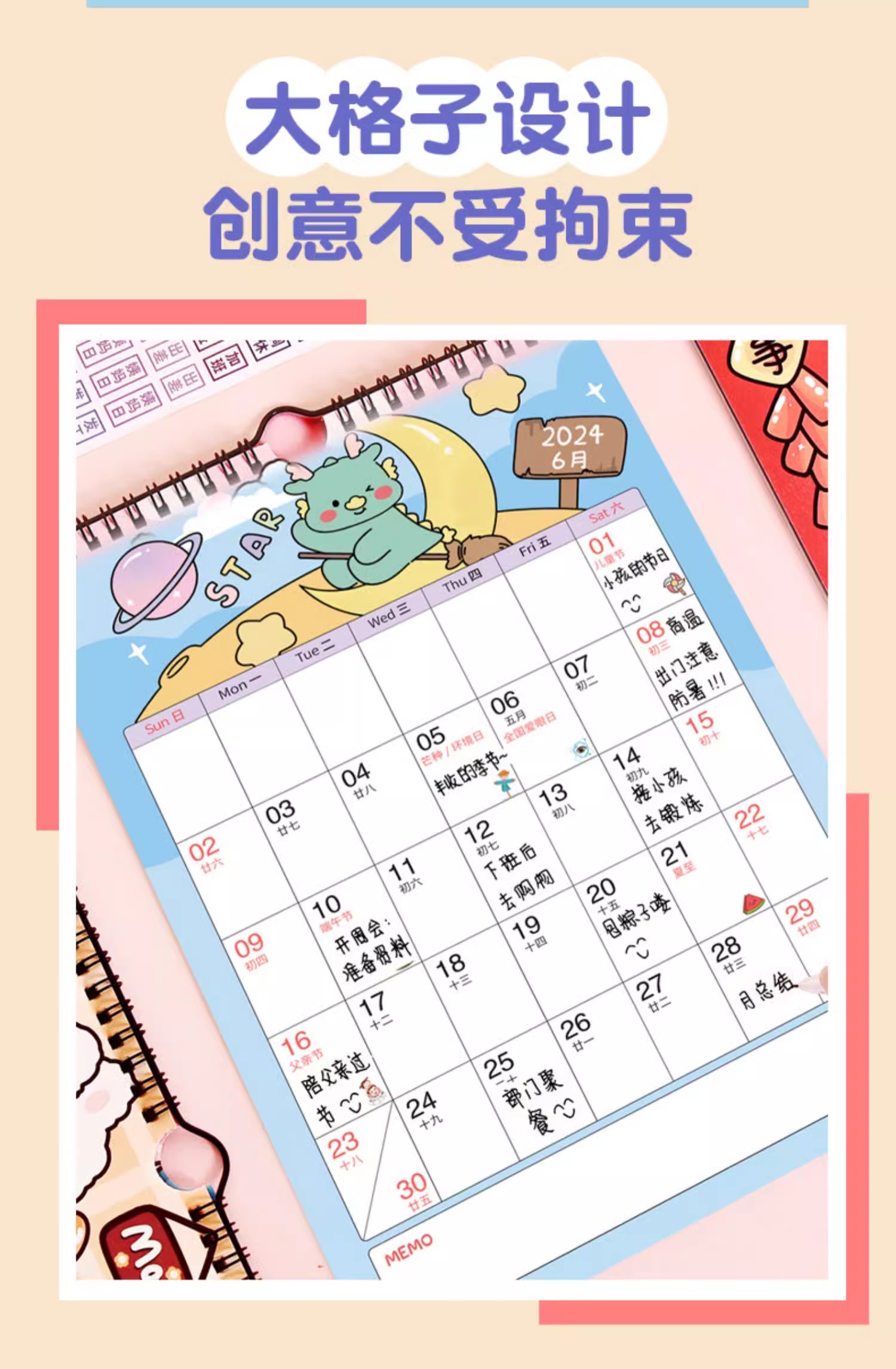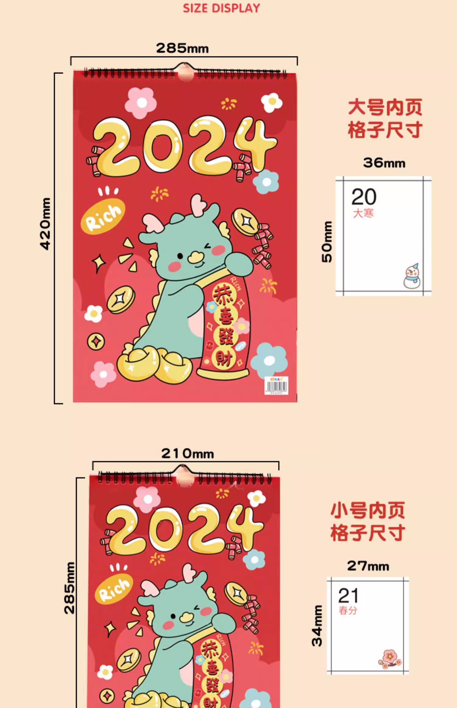 2024龍年A3壁掛けカレンダーシンプル月計画創意中国風A2号格子メモ帳カレンダー