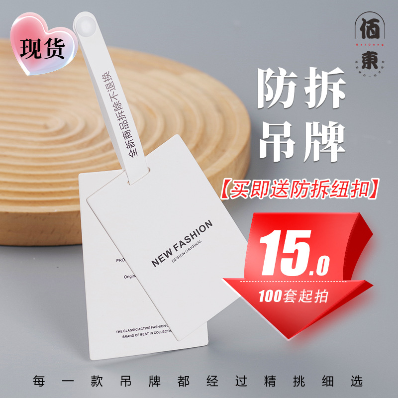 盗難防止ボタンの取り外し防止のための吊り札の現物は一度に引き裂かれます。