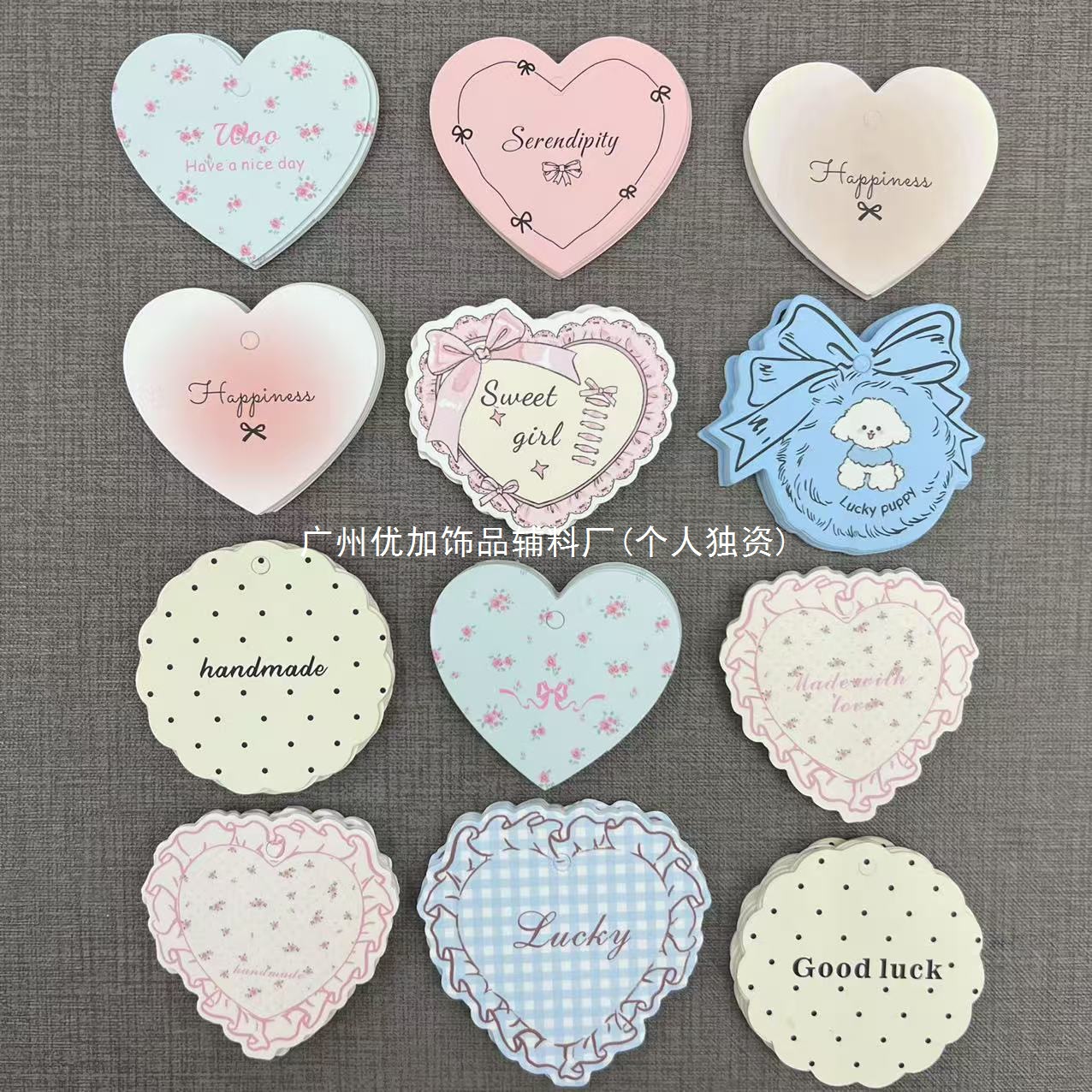 Y对折卡片发圈纸卡卡通印刷彩色可爱爱心肠圈吊牌现货可钉做改log