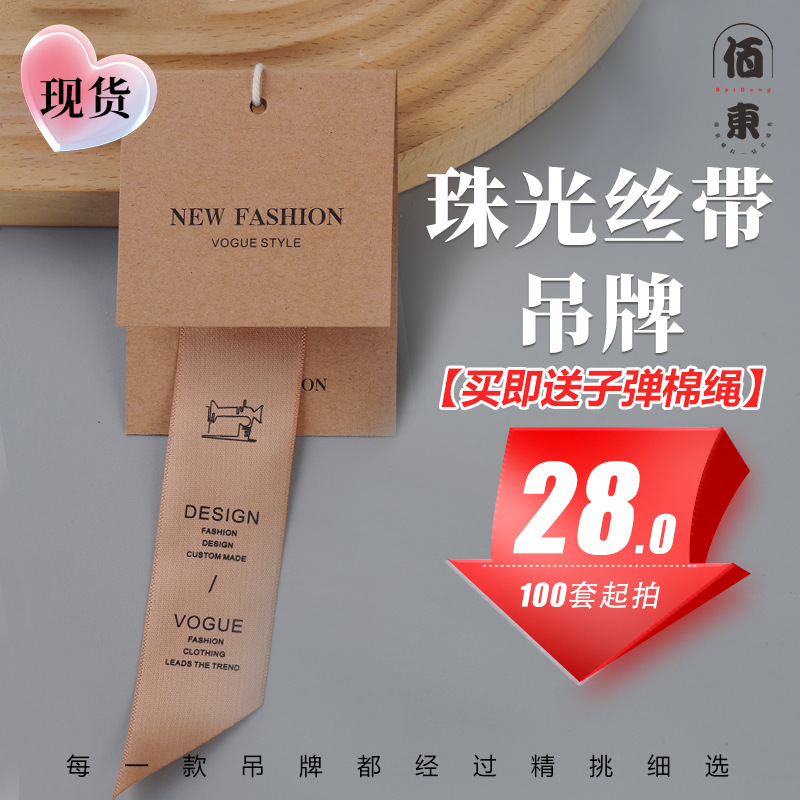 珠光リボン吊りブランド服装店ラベル合格証現物吊りカードデザイン高級リボン商標服看板