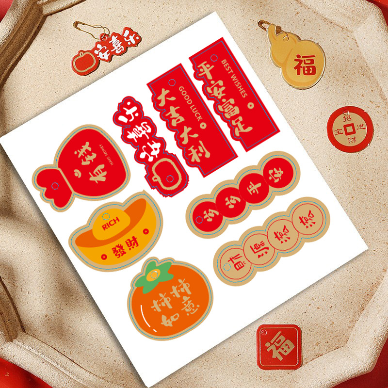 新デザイン金箔紙ラベルステッカー 中国風デザートテーブルギフトボックス包装シール 平安喜楽祝福帯