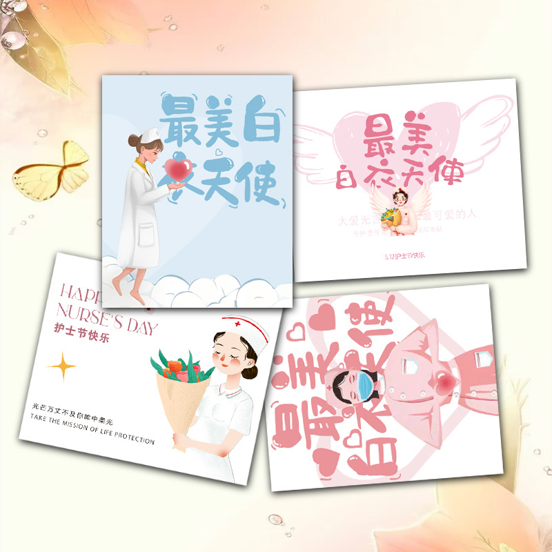 512看護師の日の楽しいグリーティングカードのタグ病院の花屋の焙煎感謝カードのシンプルな白衣の天使の医療看護