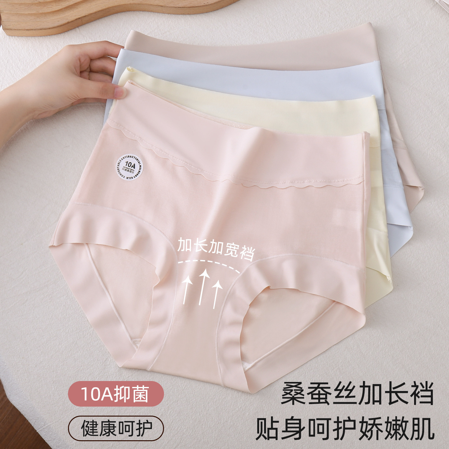 10A抑菌桑蚕丝加长加宽裆莱赛尔高腰内裤女胖MM无痕收腹大码内裤