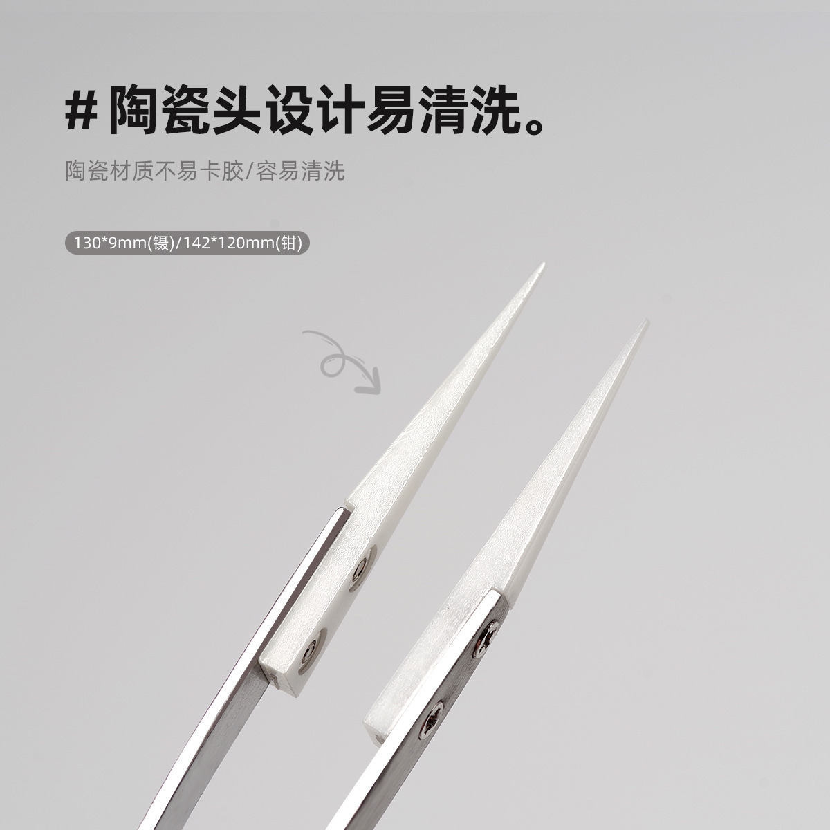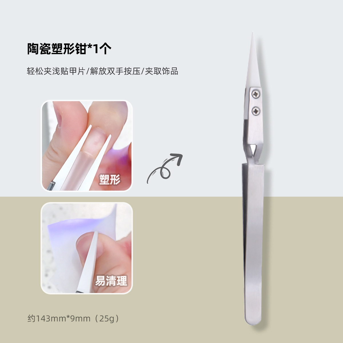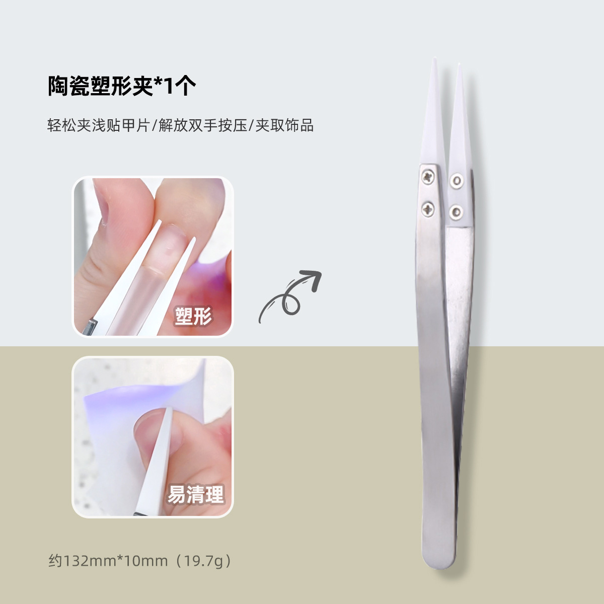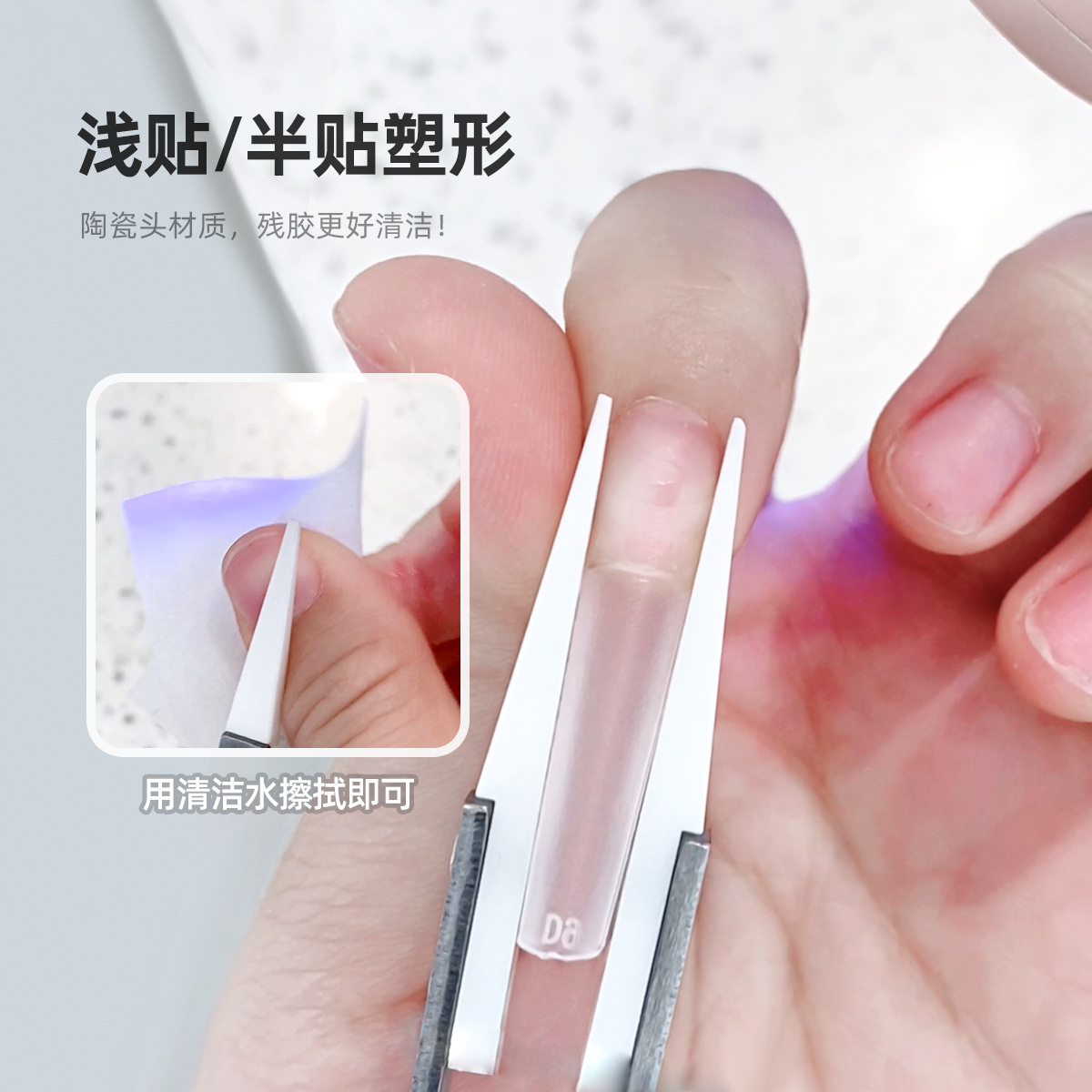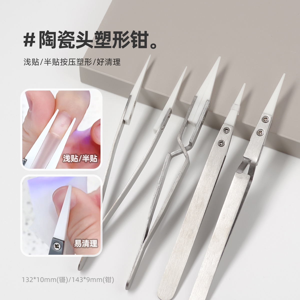 美甲陶瓷头塑形钳半贴不锈钢夹取工具直头镊子取钻光疗延长定形夹