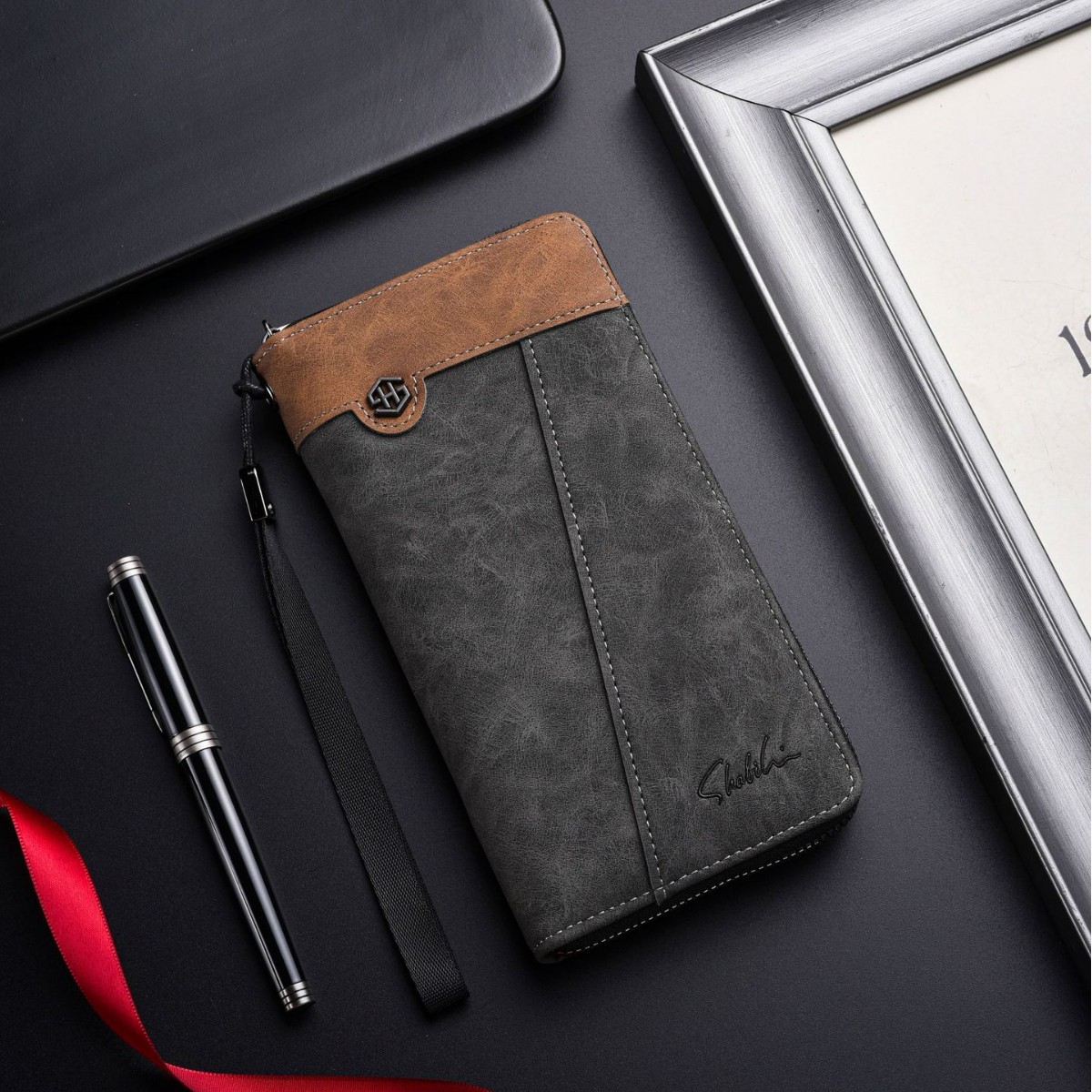 2025男复古长款拉链钱夹高档男士钱包学生新款多功能卡包男式皮夹