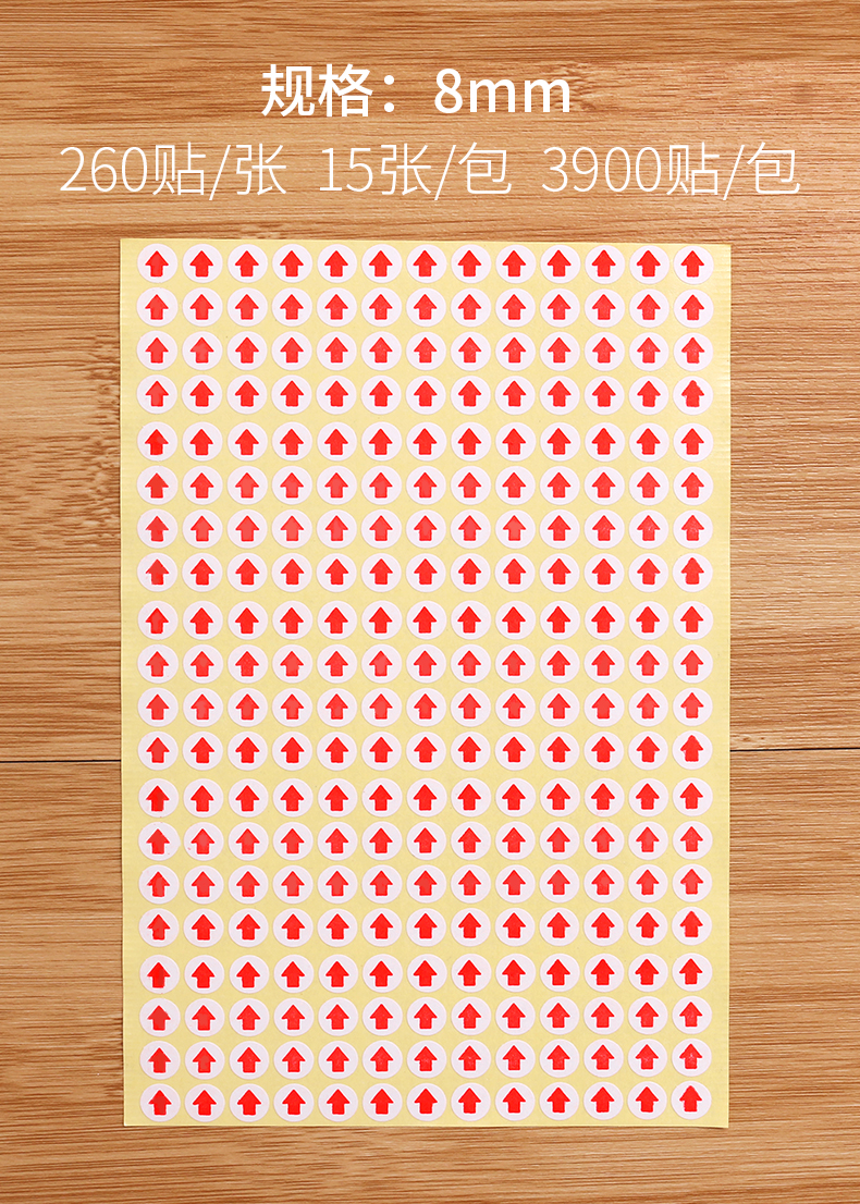 仕様とモデル 円形直径6mm|(ステッカー 7140 枚),丸型直径 8mm (ステッカー 3900 枚),丸型直径10mm(ステッカー2880枚),正方形 9x12mm 小矢印 (ステッカー 2700 枚),正方形 9x12mm 大きな矢印 (ステッカー 2700 枚),正方形 8x20mm (2160 ステッカー/パック)