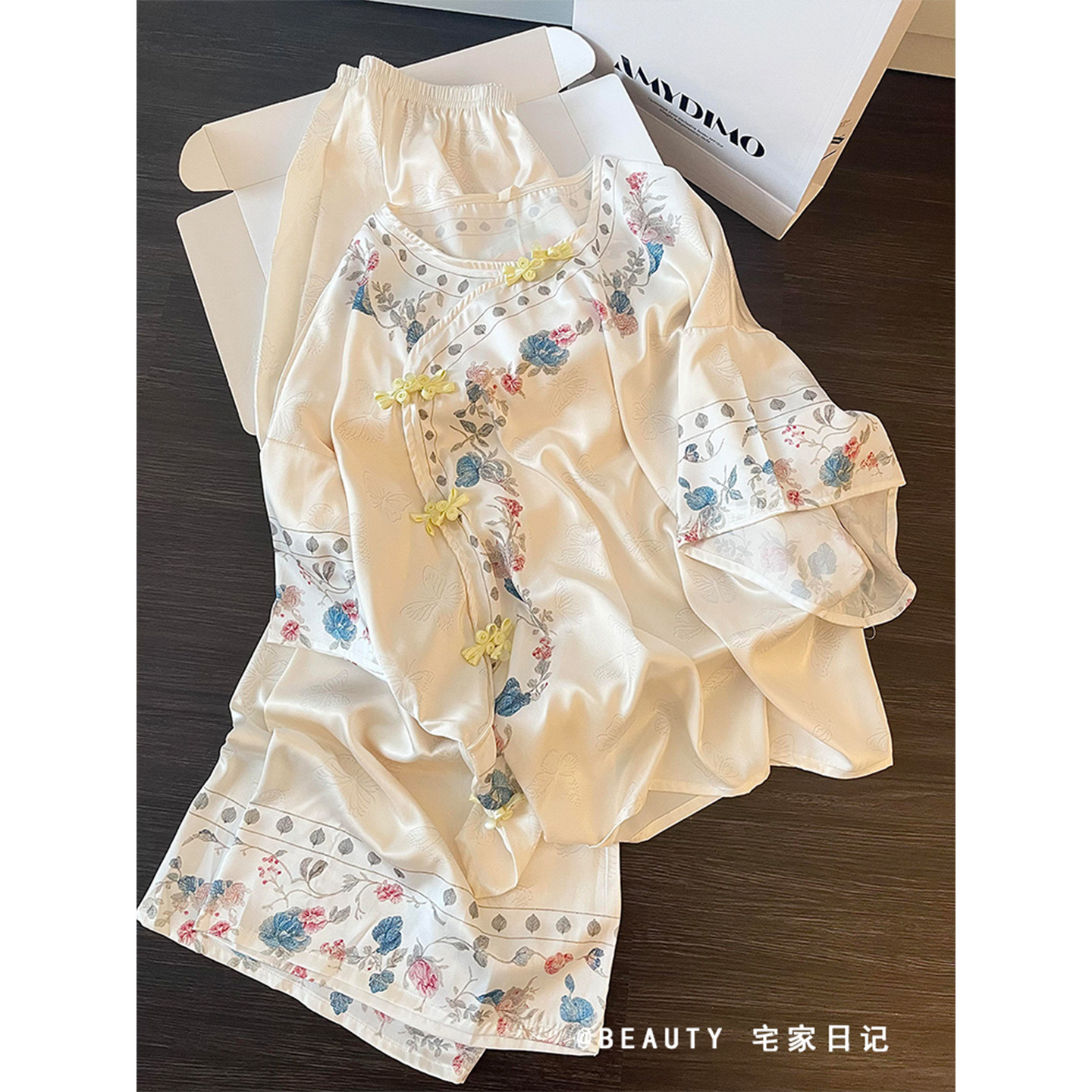 新中式国风汉元素睡衣女夏季2025新款改良提花短袖长裤家居服套装