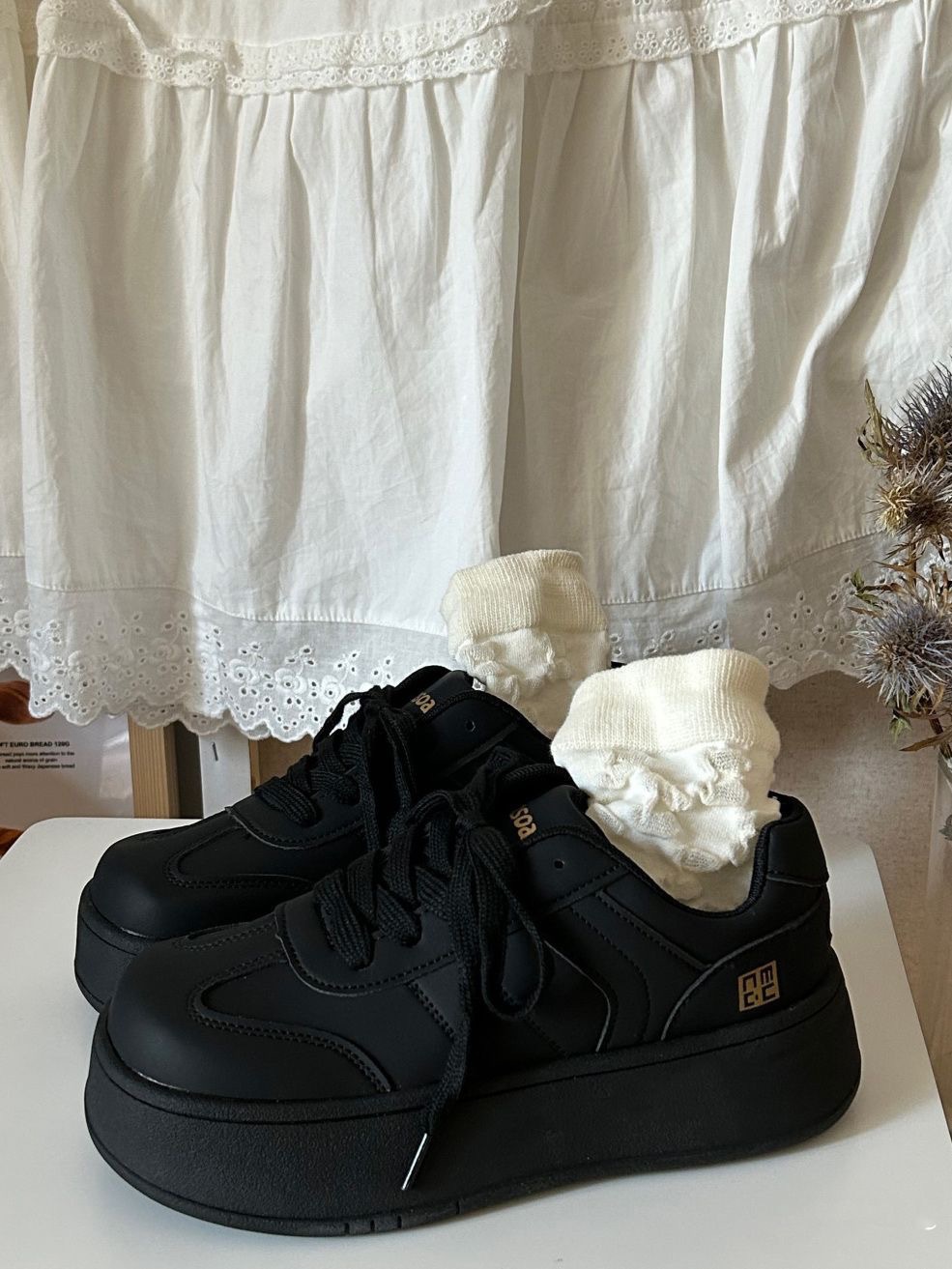 韓国版の女性用黒スニーカー、2025春の新作厚底カジュアルシューズ、スポーツ白靴、万能スポーツパンシューズ
