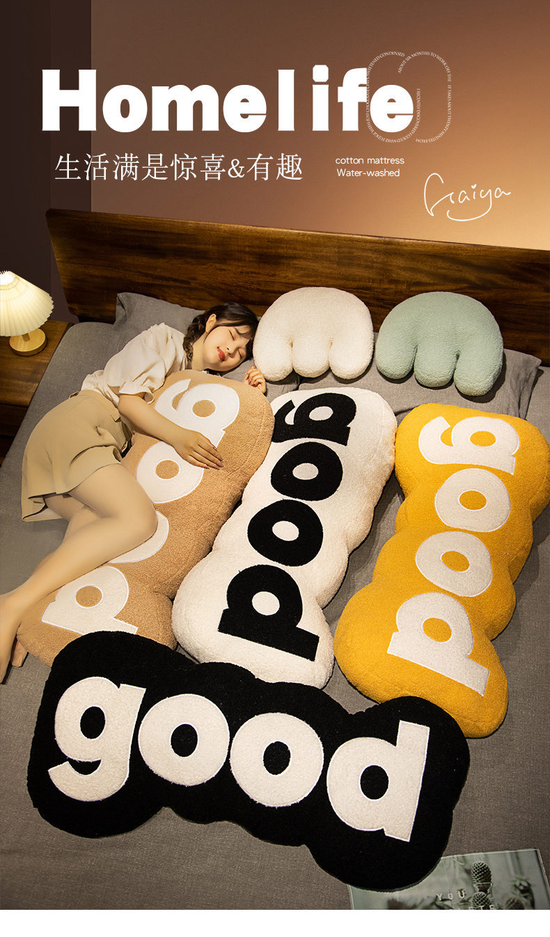 长条good沙发抱枕床头靠垫家居装饰可爱女生睡觉夹腿字母毛绒抱枕