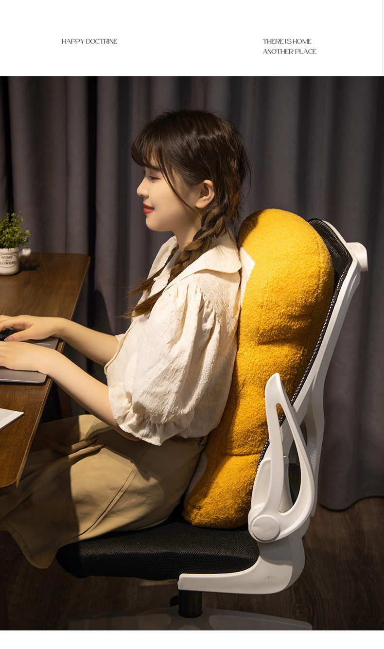 創意の小さい炎の腰はオフィスのシートの小さい炭の炎の腰のクッションに寄りかかって長く椅子の背もたれのソファーに座って腰をかばって枕を抱きます。