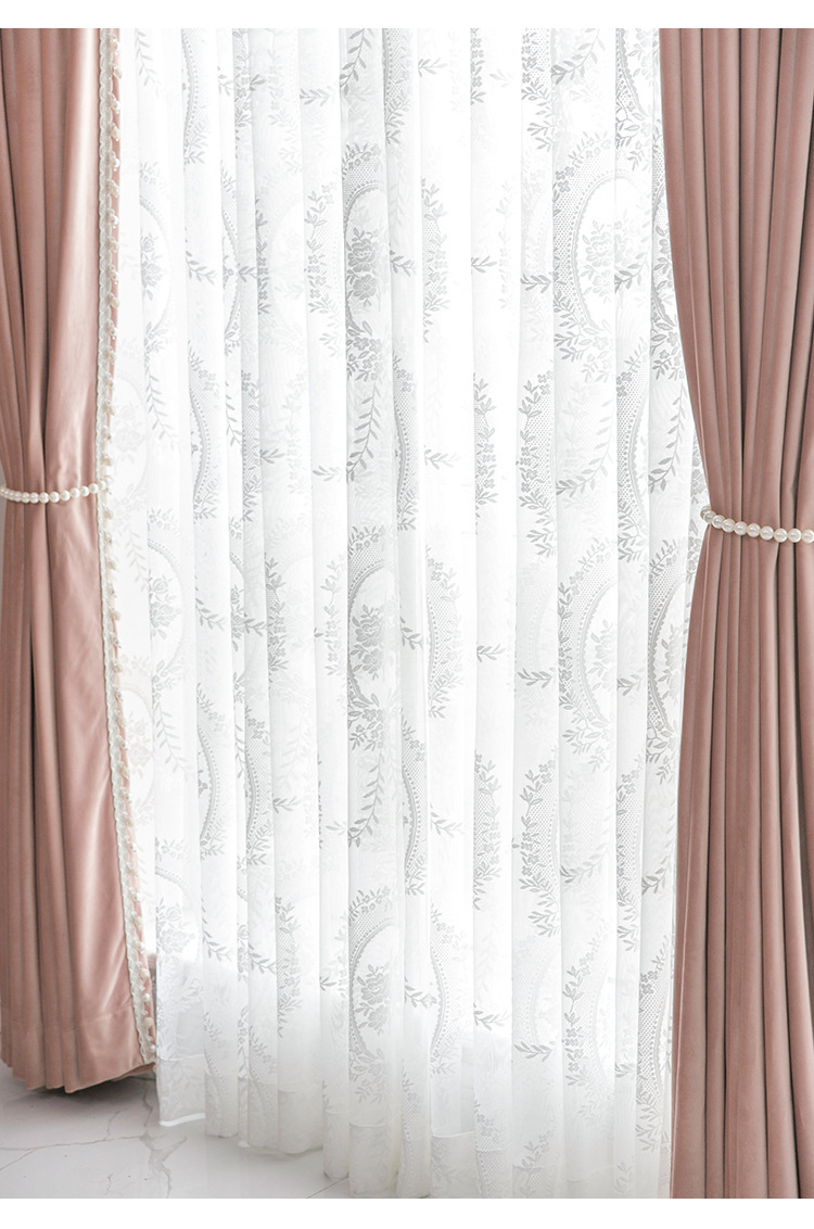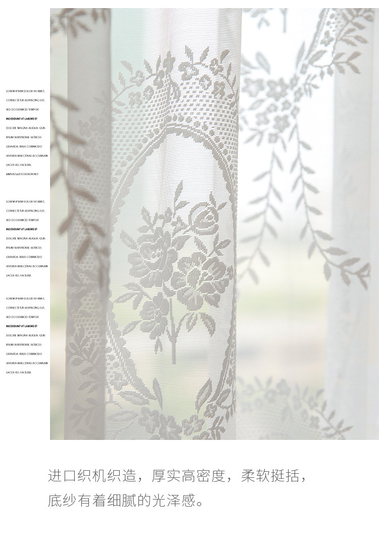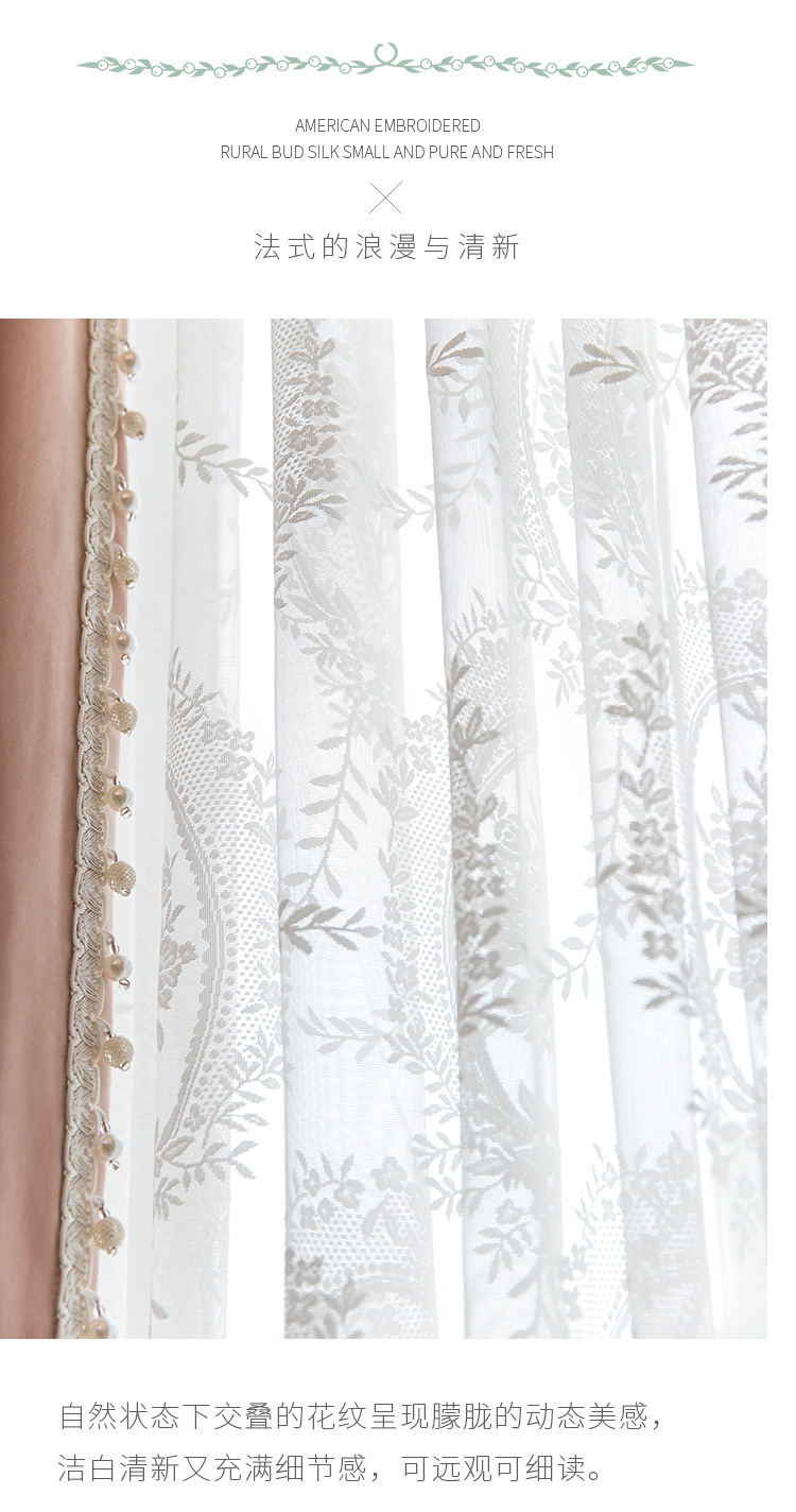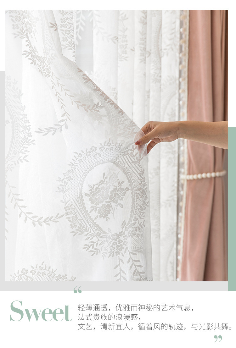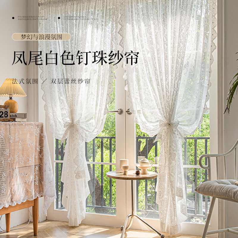 フレンチレトロカーテン、ドリームレースガーゼカーテン、リビングルームバルコニー、寝室窓スクリーン、透光性と不透明性、フェニックステールレースガーゼ