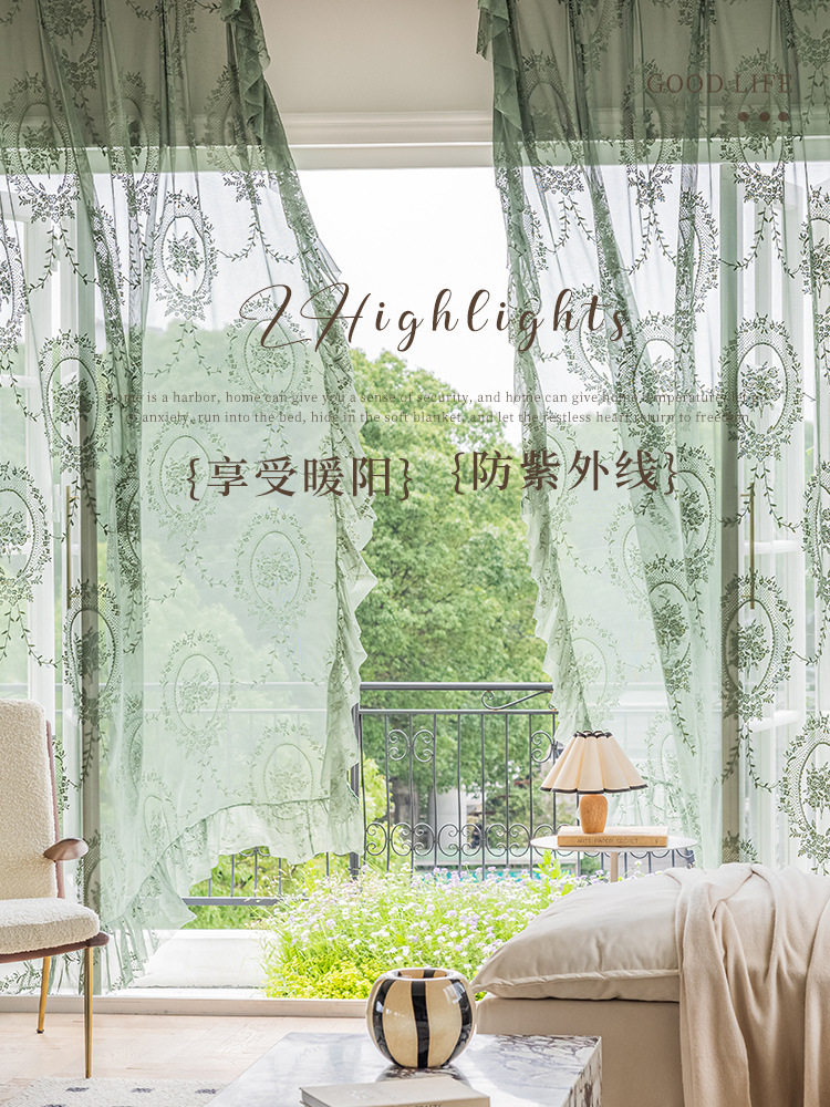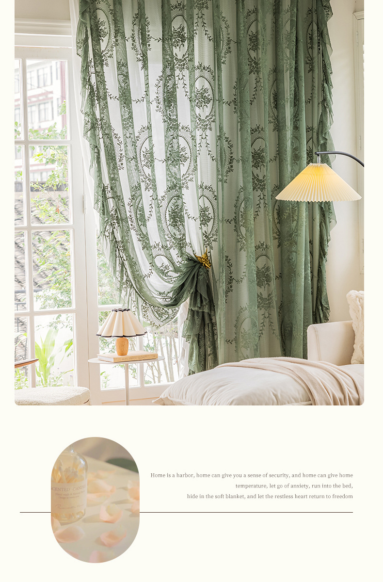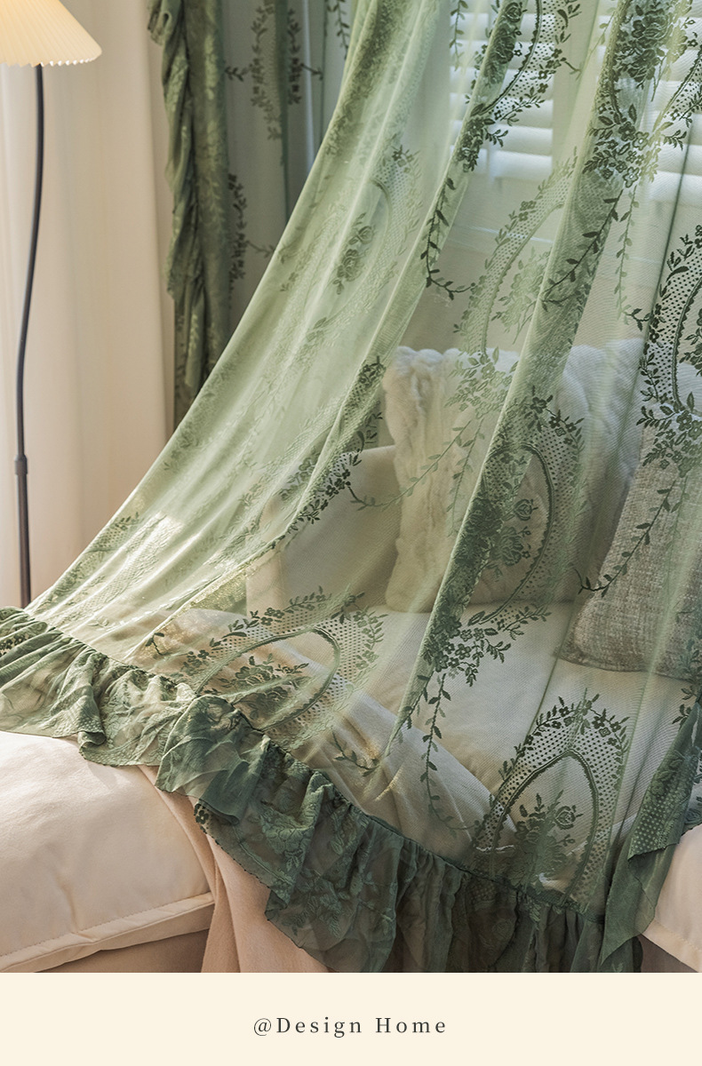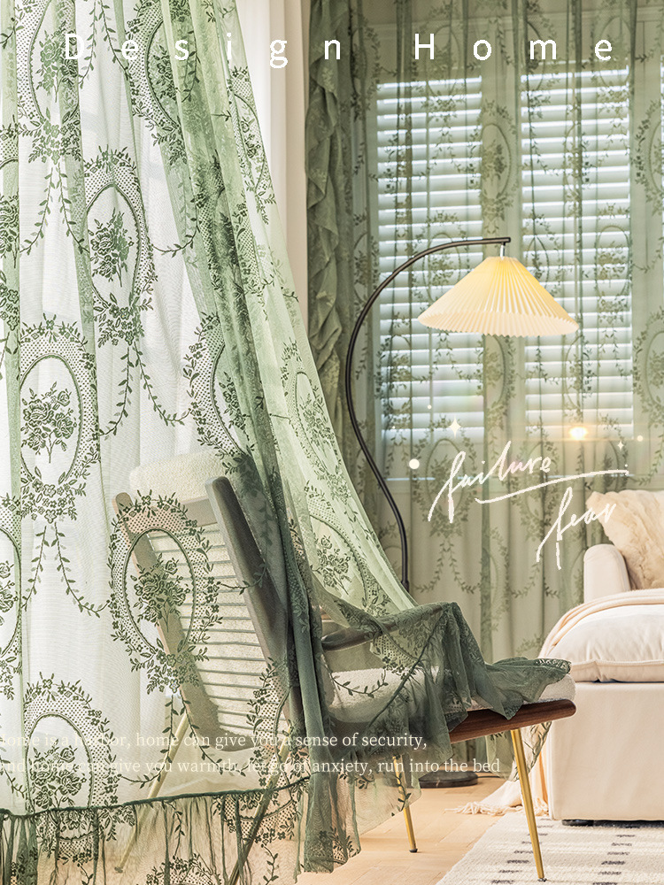 フランスのレトロなカーテンのカーテンの緑のレースの王女の風のガーゼのカーテンは軽くて豪華で、光が透けません。