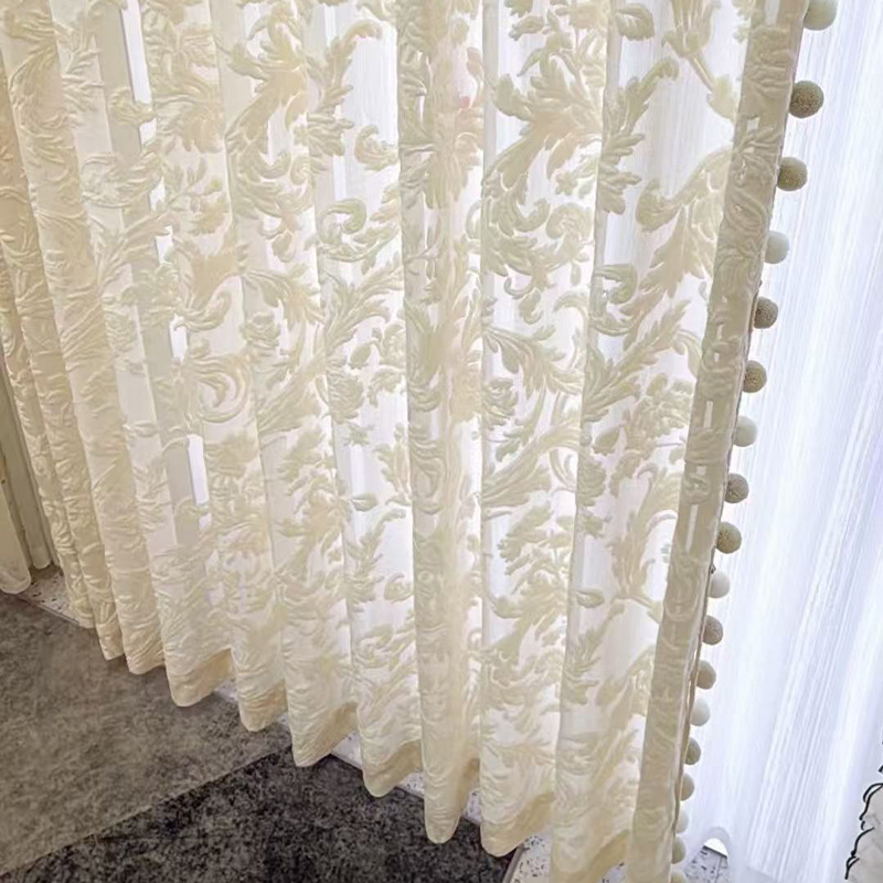 中国式レトロクリーム風鳳尾ジャカードカーテンフランス式リビングルーム