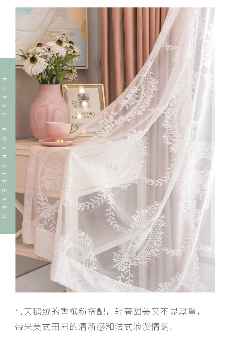 ロマンチックなフレンチガーゼカーテンレースレトロガーリーホワイトガーゼ妖精風メッシュカーテンリビングルームバルコニーガーゼ
