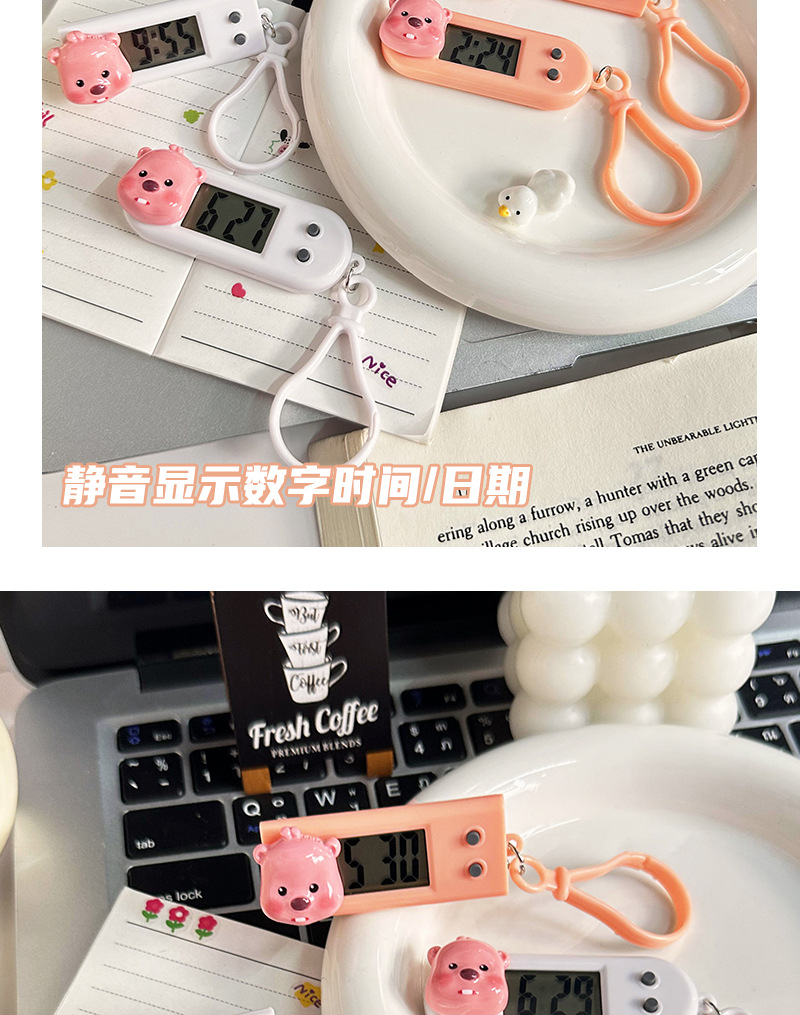 新型かわいいビーバー掛け時計携帯型学生ミニ電子時計仕事学習試験スケジュール静音