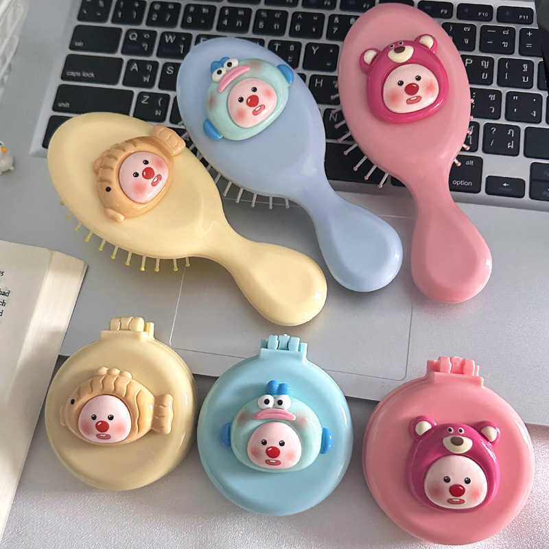 新しいかわいい変装ビーバーの小さなエアバッグ櫛携帯二合一折り畳み鏡櫛diyエアマット櫛アニメ櫛