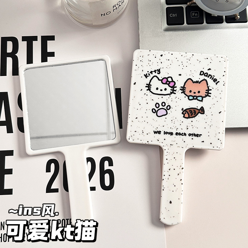 可爱Kitty猫手持镜子便携随身带补妆化妆镜学生宿舍迷你小手柄镜