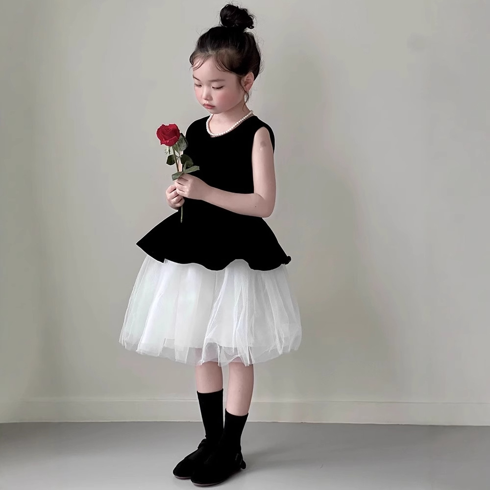 女の子プリンセスドレススカート夏2025新作女の子夏服洋風ベストスカート富家千金感ワンピース