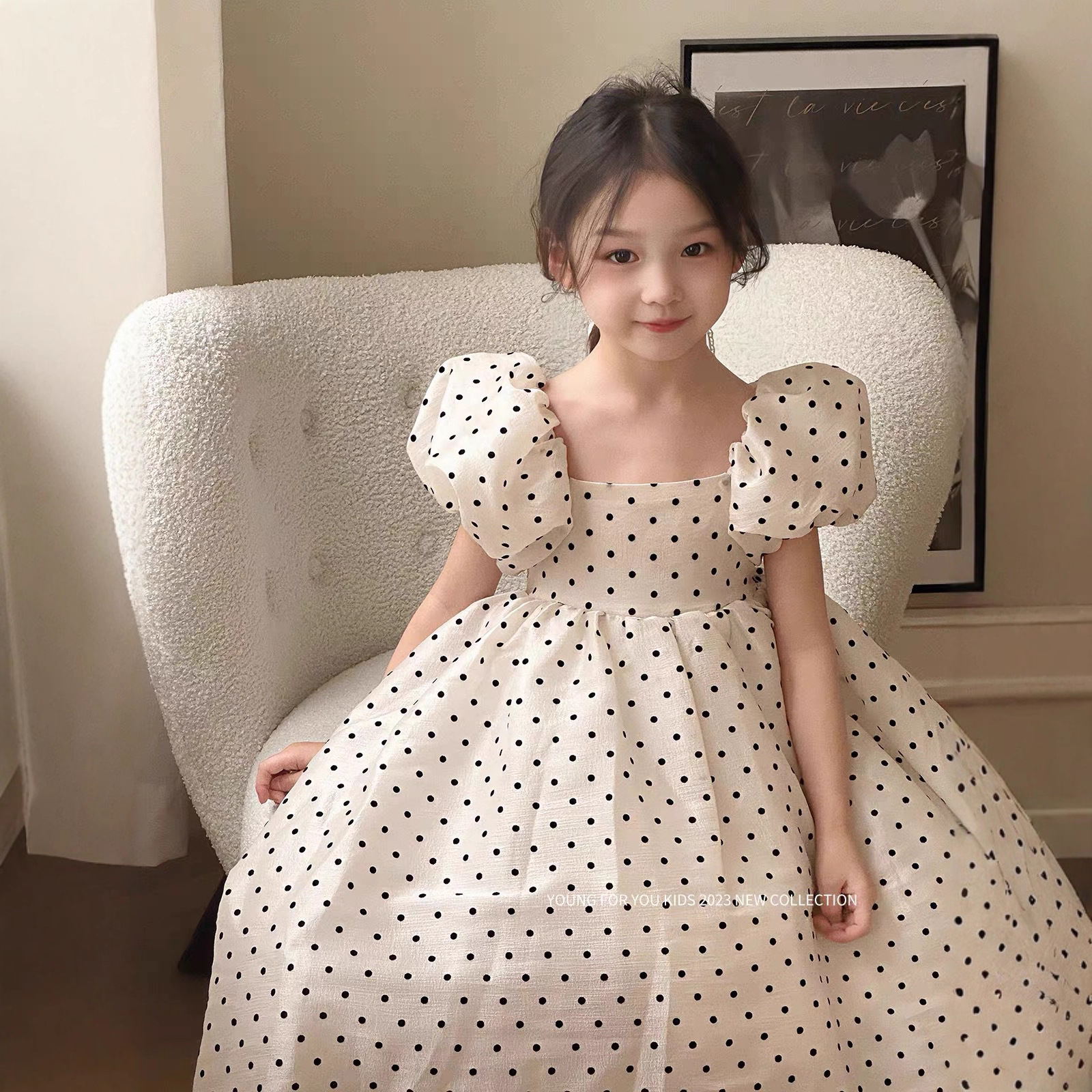 女の子ドレス夏の新しいハイエンド水玉パフスリーブプリンセスドレスドレスドレス子供と中学生のためのドロップシッピング