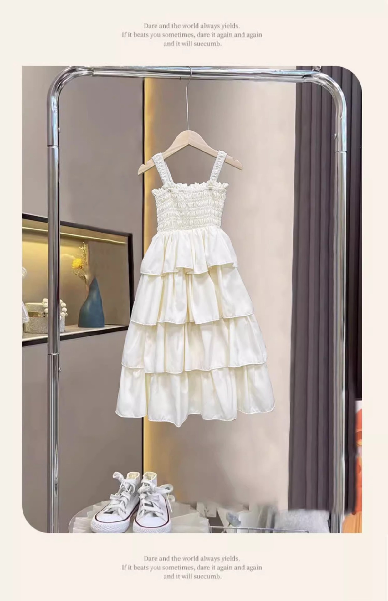 女の子用スカート、万能な夏の新作ケーキスカート、サスペンダースカート、ワンピース、韓国風ネットセレブ夏服、トレンドスカート、ノースリーブ