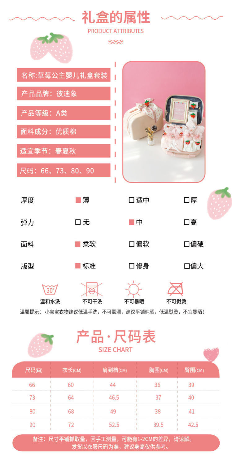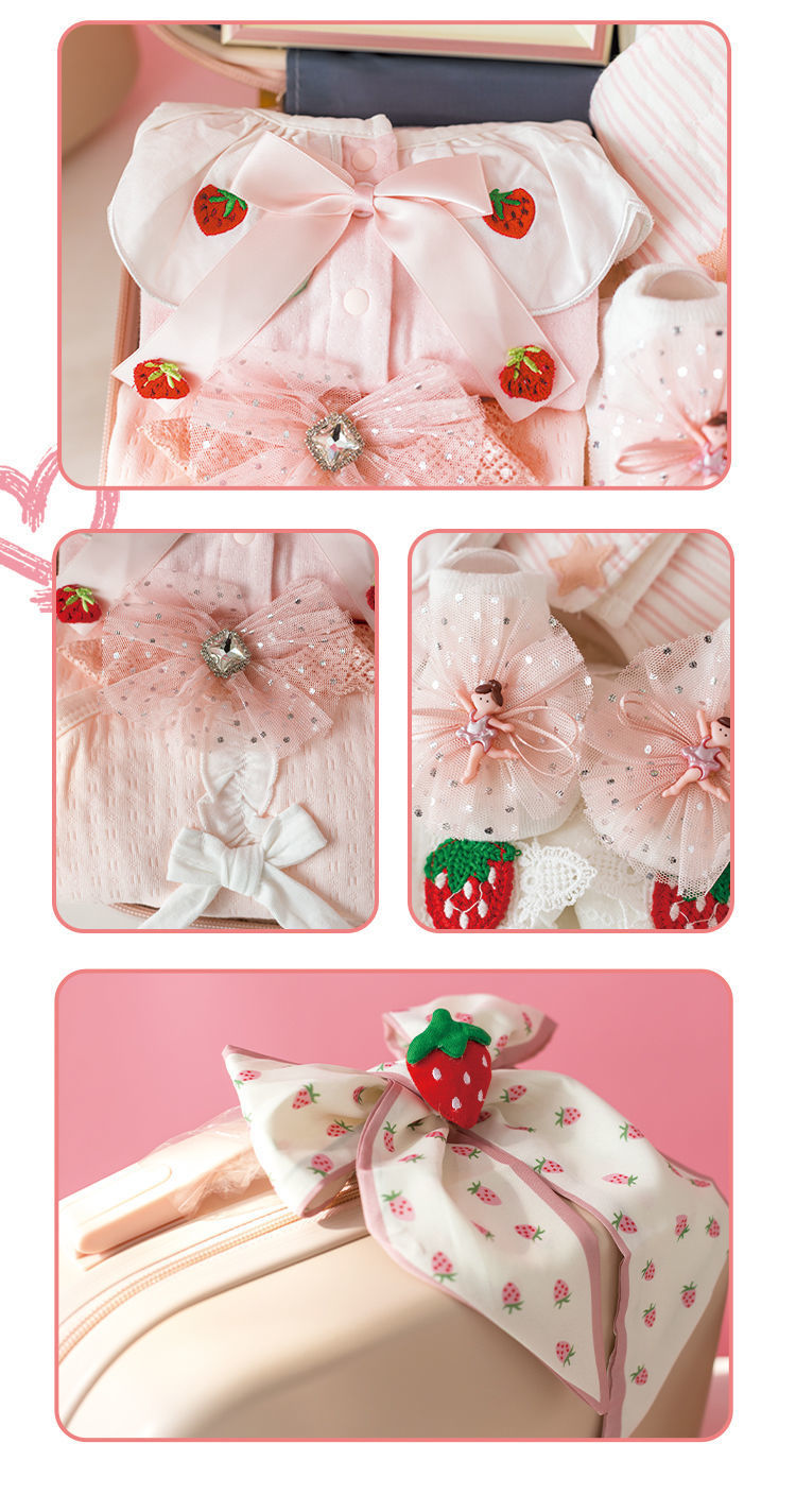 新入生の赤ちゃんの服のセットのプレゼントの箱の夏のイチゴの王女の満1歳の女性の赤ちゃんの満月のプレゼントは高級です。