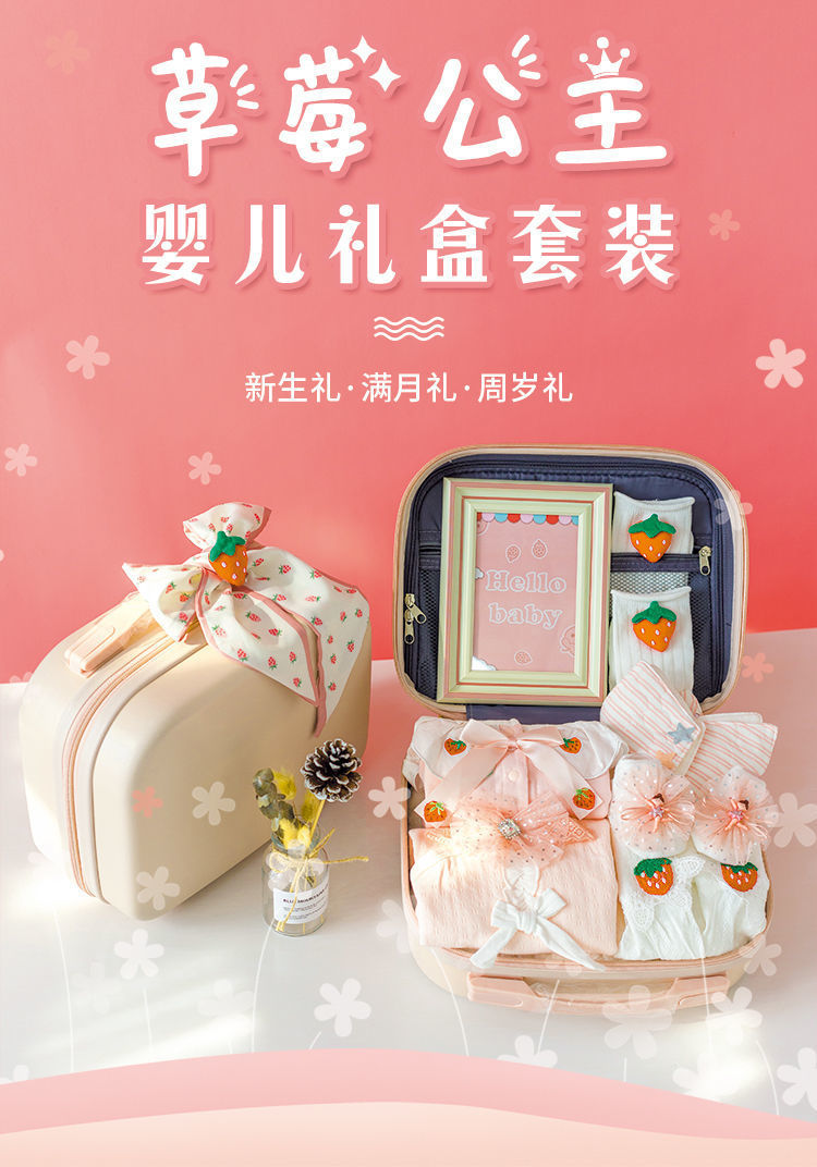 新初生ベビー服ギフトボックスセットプレゼント用品お顔プレゼント赤ちゃん女の子満月百日夏プリンセス