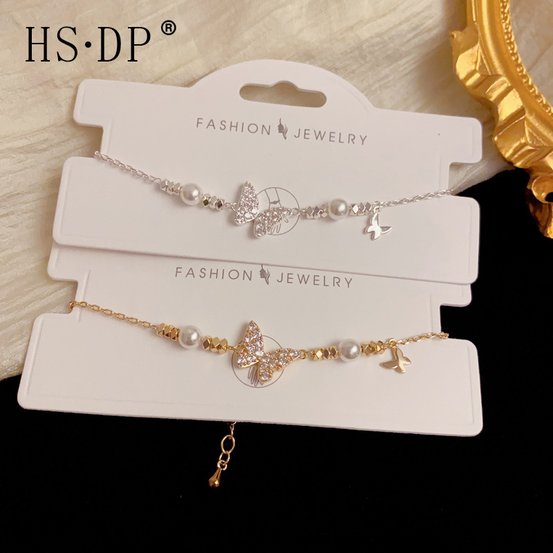 日韩时尚温柔百搭双层珍珠链条蝴蝶手链个性甜美简约设计手饰批发
