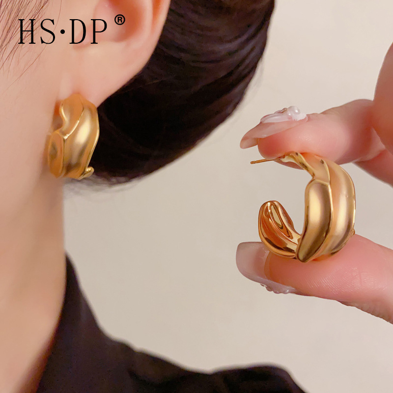 复古跨境轻奢时尚简约金属不规则耳圈小众设计感独特冷淡风耳环女