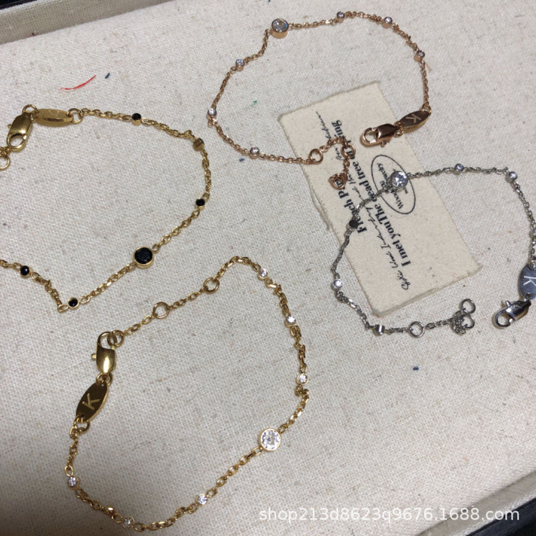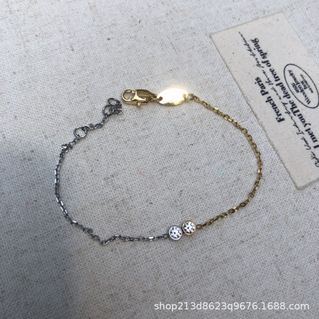 钛钢镀18K金拼银色双锆石手链小众高级轻奢简约风精致百搭叠戴