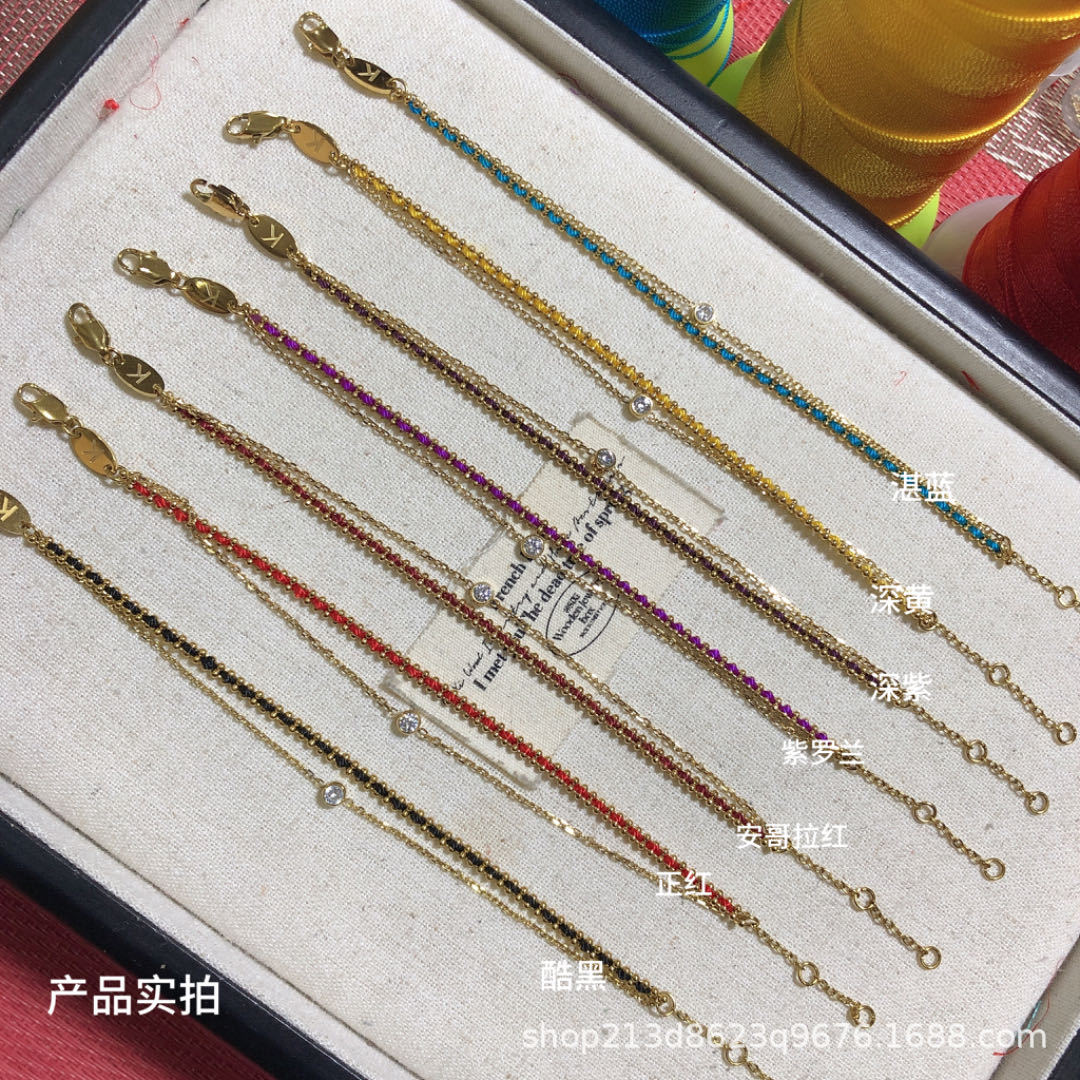 真空メッキ18k金フランス赤縄幸運カラーロープ本命年小衆ファッションOLシングル装着男女カップル