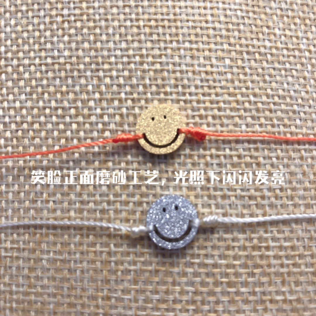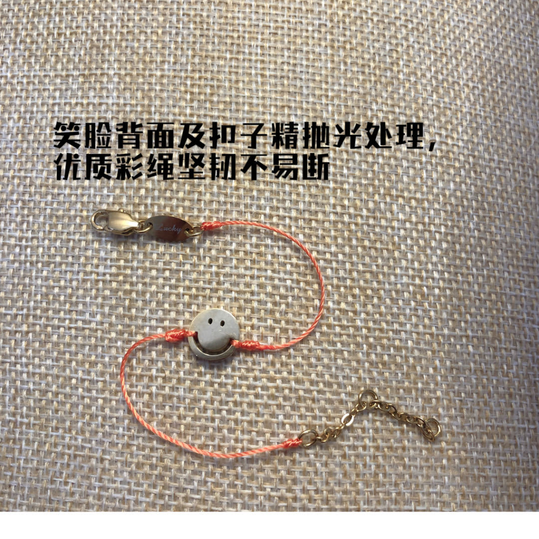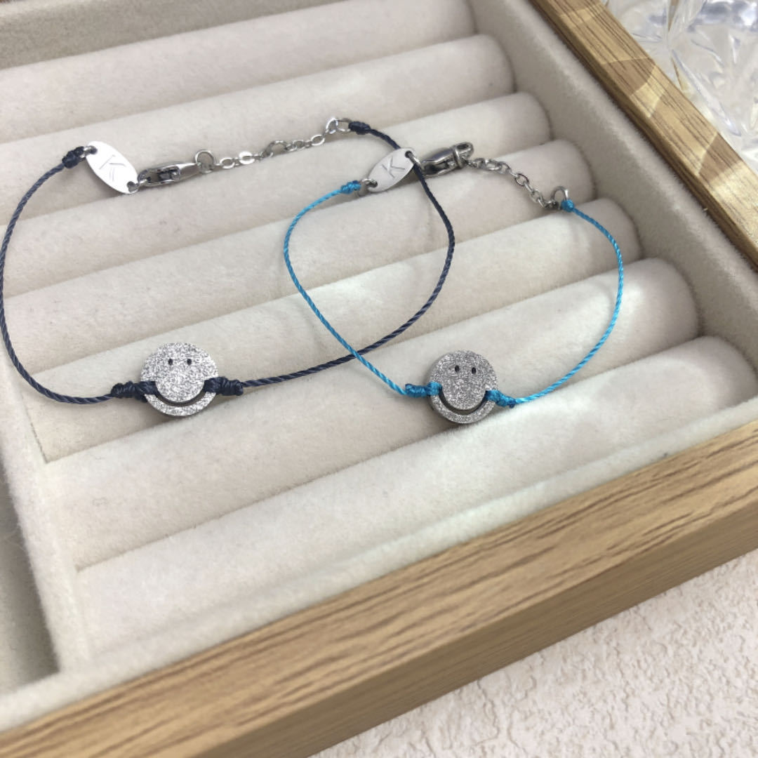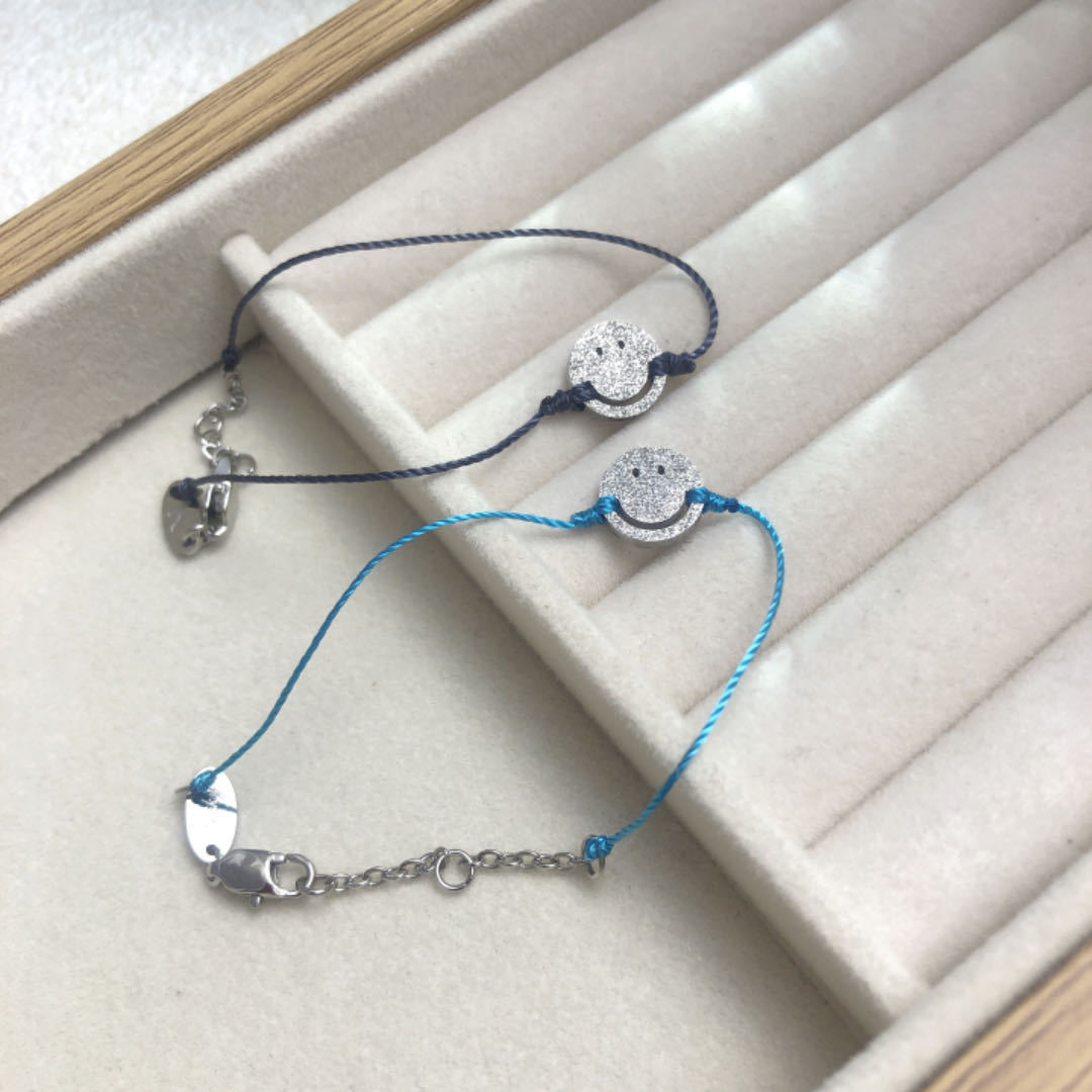 チタン鋼製で色褪せないフランス製の赤い紐と小さな青い紐の幸運で可愛い笑顔の手作りブレスレット(男女カップル、親友向け)