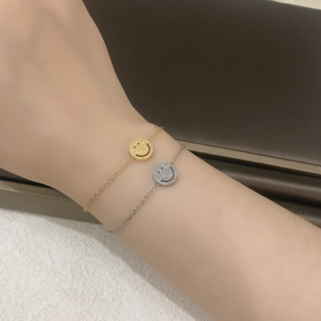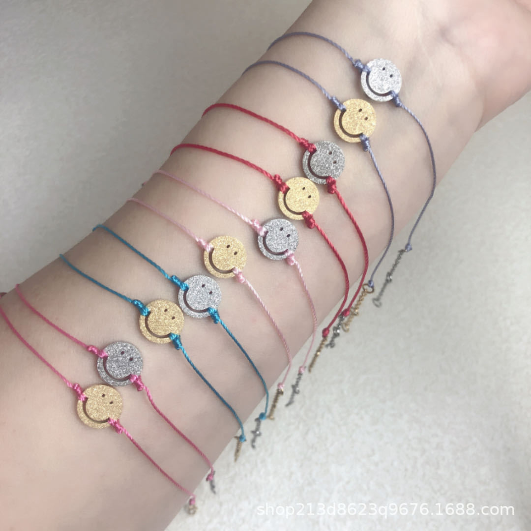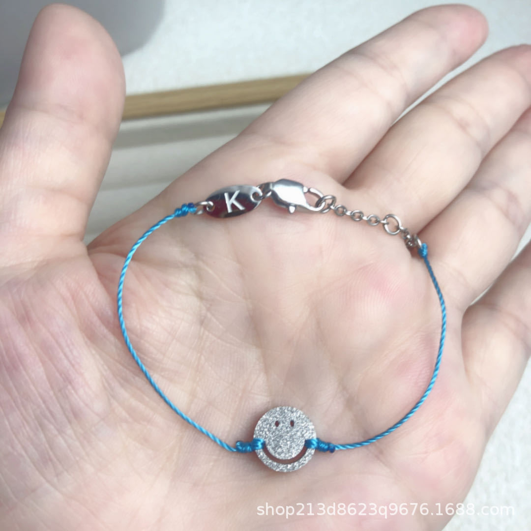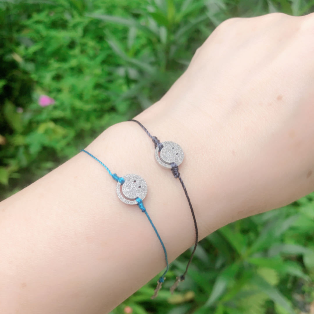 チタン鋼製で色褪せないフランス製の赤い紐と小さな青い紐の幸運で可愛い笑顔の手作りブレスレット(男女カップル、親友向け)
