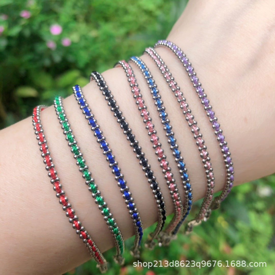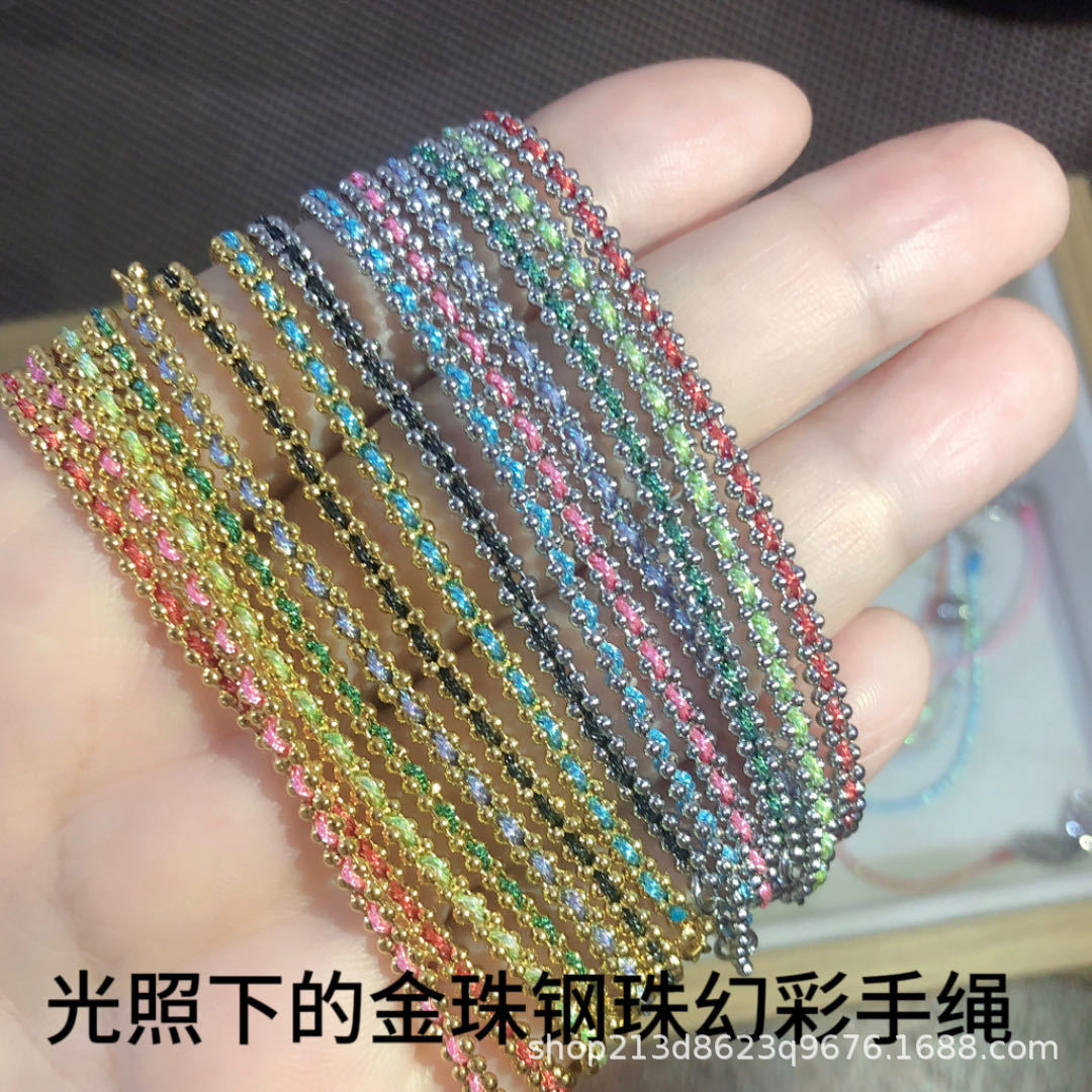钛钢不掉色金珠缠幸运彩绳手搓编织红绳本命年转运新年礼物情侣